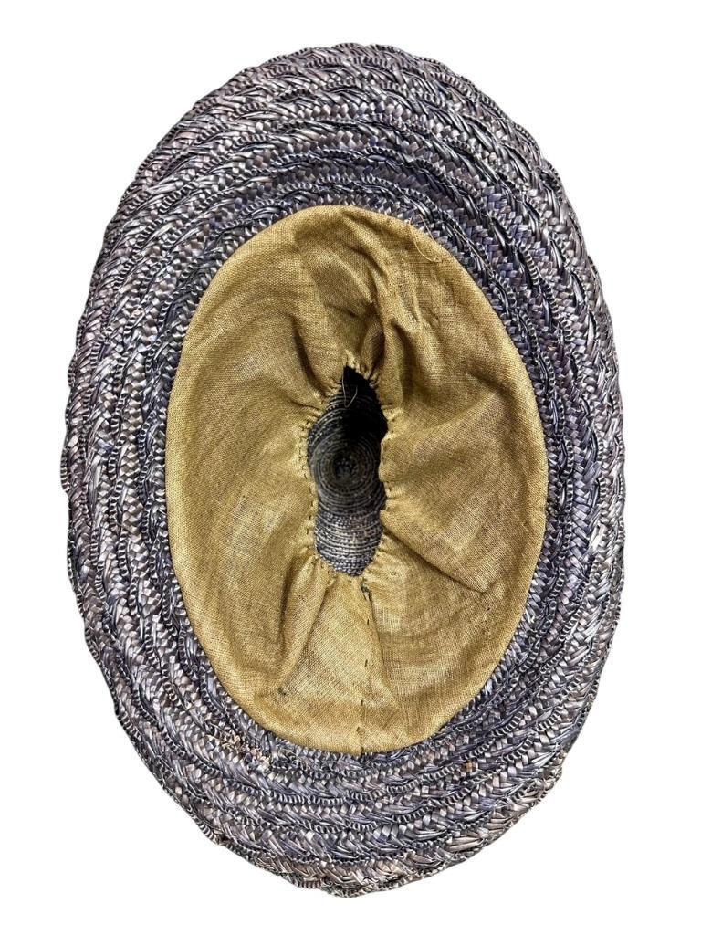 Antique Tyrolean Style Hat of Black Straw Circa 1885 Previously owned and remains in good condition for its age with some damage in the back