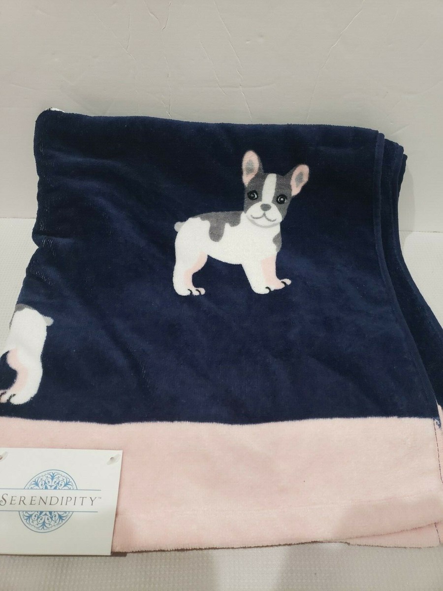 Serendipity 5pc Frenchie French Bulldog Dog Bath Towels & Washcloths Blue Pink