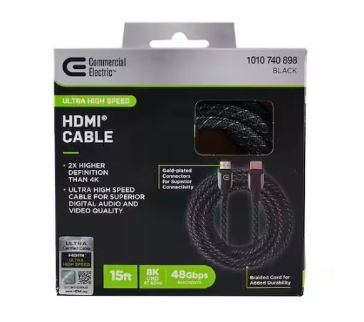 Commercial Electric HDMI 15ft Ultra High Speed 8K 48Gbps Cable New