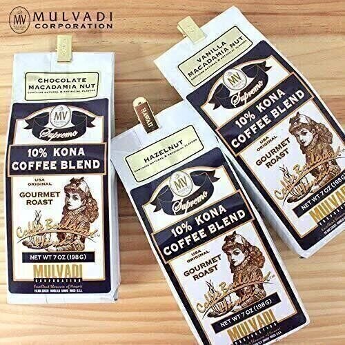 Mulvadi 10% Kona Coffee Blend Chocolate Madadamia Nut Flavor 7 oz Bag