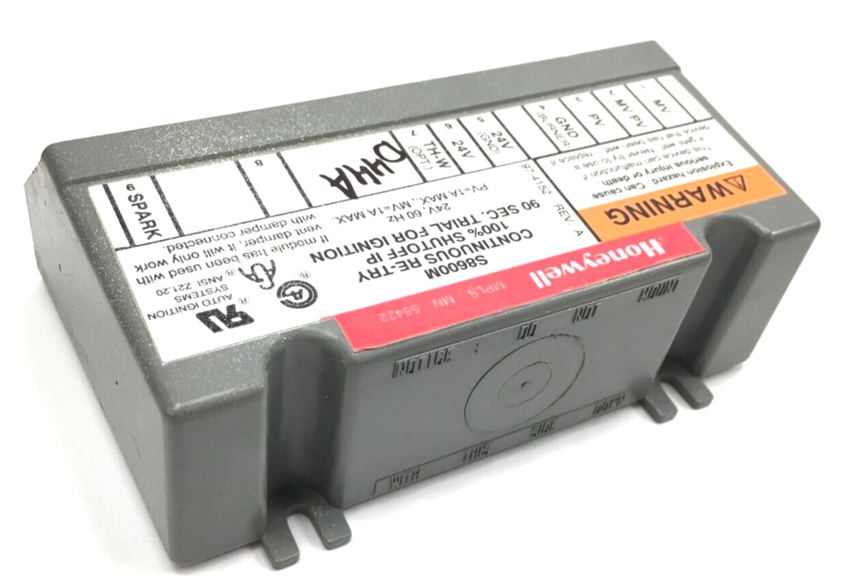 This is Honeywell S8600M1005 (broken plastic housing) Continuous Retry Furnace Control Ignition HQ1005651HW used.