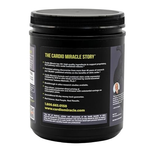 Complete Nitric Oxide Support for Every Heart ? More than beet root powder, Cardio Miracle delivers a full-spectrum blend of L-Arginine AKG, L-Citrulline, Organic Beets, and Vitamin D3 to support 24-hour nitric oxide expression for optimized energy and lasting heart health for both men and women. Over 50 Nutrients ? Each serving contains over 50 nutrients including adaptogens, antioxidants (like quercetin, resveratrol, glutathione, and grape seed extract), and superfoods. Drink Cardio Miracle to optimize energy, focus and whole-body resilience. Natural Energy, No Crash ? Experience clean, sustained energy without caffeine. Cardio Miracle enhances oxygen utilization and mitochondrial function, fueling you naturally from the inside out. Doctor Trusted, Science-Driven ? Developed with insights from cutting-edge nanomedical research, Cardio Miracle has been shown to increase nitric oxide bioavailability and reduce oxidative stress by up to 50% in endothelial cells, which is critical for heart, brain, and metabolic health. Formulated with Precision ? Safe, clean, and made in the USA. Manufactured in a GMP-certified facility and proudly BSCG drug-free certified, Cardio Miracle is gluten-free, keto-friendly, and free from artificial flavors or sweeteners. Each batch is produced with premium-grade ingredients to ensure consistency, safety, and reliability. Convenient Easy to Use ? Mix one serving with 8-16 oz of water or juice, twice daily, in the morning and afternoon or evening. Enjoy our great-tasting Mixed Berry flavor with zero sugar added.