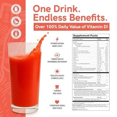 Complete Nitric Oxide Support for Every Heart ? More than beet root powder, Cardio Miracle delivers a full-spectrum blend of L-Arginine AKG, L-Citrulline, Organic Beets, and Vitamin D3 to support 24-hour nitric oxide expression for optimized energy and lasting heart health for both men and women. Over 50 Nutrients ? Each serving contains over 50 nutrients including adaptogens, antioxidants (like quercetin, resveratrol, glutathione, and grape seed extract), and superfoods. Drink Cardio Miracle to optimize energy, focus and whole-body resilience. Natural Energy, No Crash ? Experience clean, sustained energy without caffeine. Cardio Miracle enhances oxygen utilization and mitochondrial function, fueling you naturally from the inside out. Doctor Trusted, Science-Driven ? Developed with insights from cutting-edge nanomedical research, Cardio Miracle has been shown to increase nitric oxide bioavailability and reduce oxidative stress by up to 50% in endothelial cells, which is critical for heart, brain, and metabolic health. Formulated with Precision ? Safe, clean, and made in the USA. Manufactured in a GMP-certified facility and proudly BSCG drug-free certified, Cardio Miracle is gluten-free, keto-friendly, and free from artificial flavors or sweeteners. Each batch is produced with premium-grade ingredients to ensure consistency, safety, and reliability. Convenient Easy to Use ? Mix one serving with 8-16 oz of water or juice, twice daily, in the morning and afternoon or evening. Enjoy our great-tasting Mixed Berry flavor with zero sugar added.