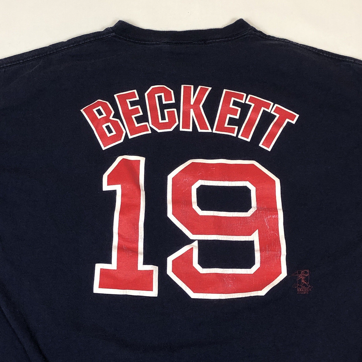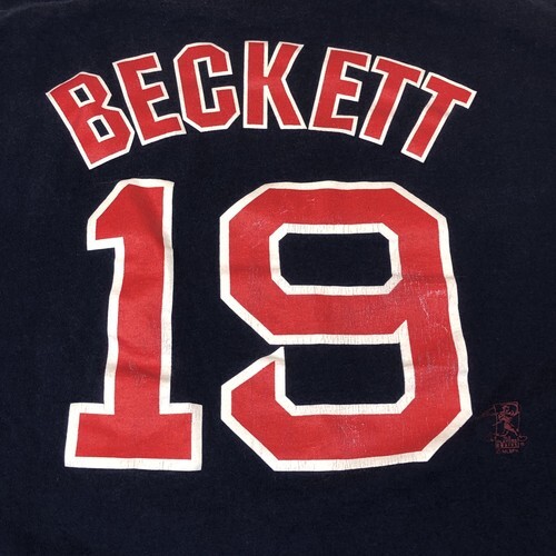Majestic Boston Red Sox Josh Beckett 19 Navy Blue Jersey T-Shirt Mens Size Large