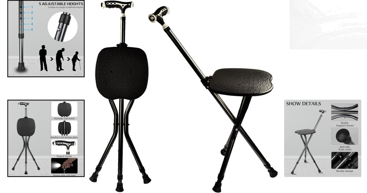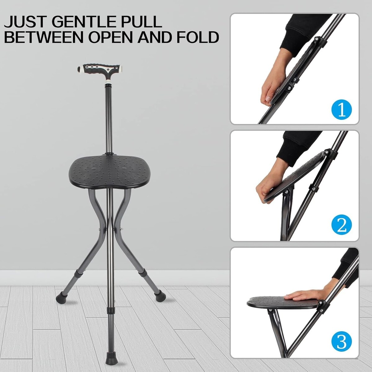 This innovative folding cane, designed for convenience and comfort, is a must-have accessory for those seeking reliable support along with the ability to take a much-needed rest anytime, anywhere.