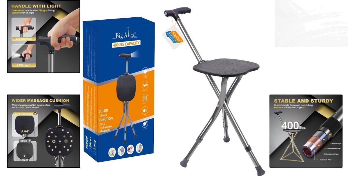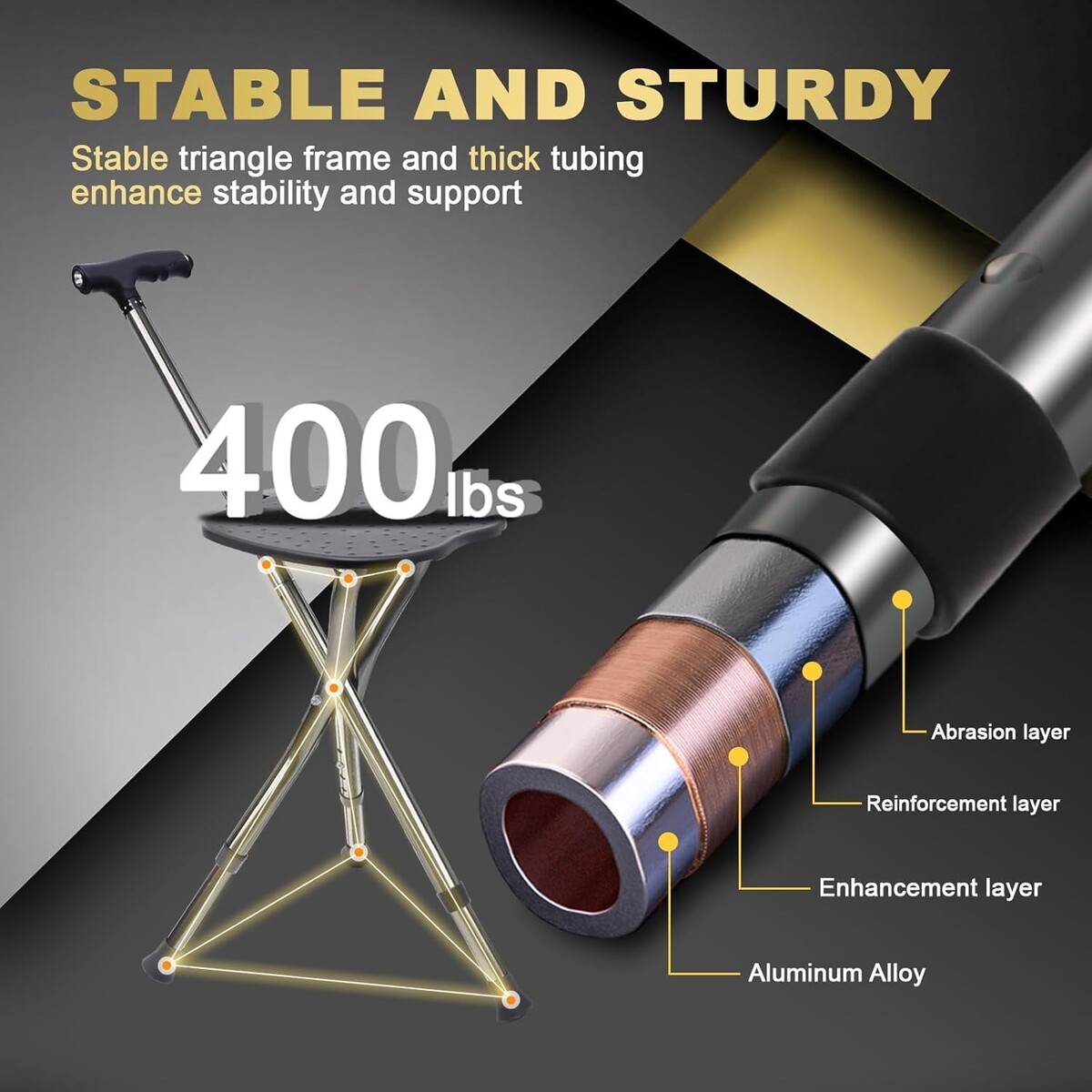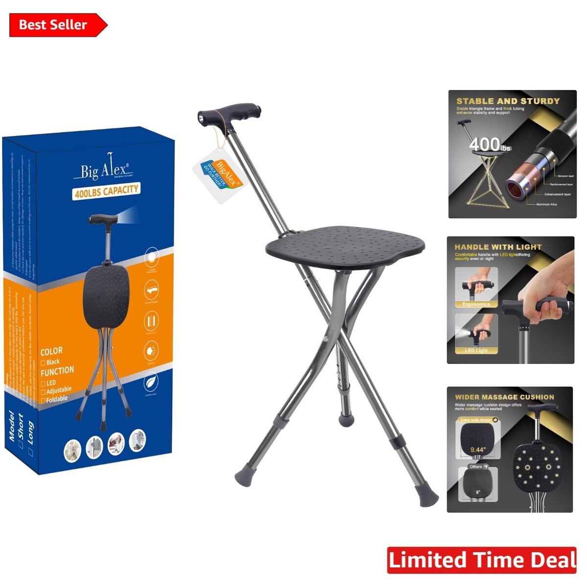 Ergonomic Lightweight Cane with Folding Seat & LED Light - Ideal for Seniors