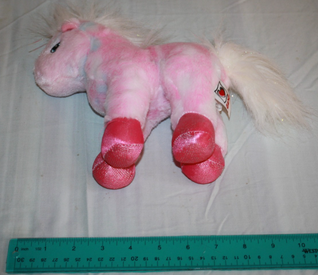 Webkinz, Plush, Pink Pony with little bit of Blue Plush, HM117, Sparkle Feet with Play wear, Approx 8 inch, No Code, Stuffed Animal, Soft Toy, Sparkle in Mane and Tail, by Ganz