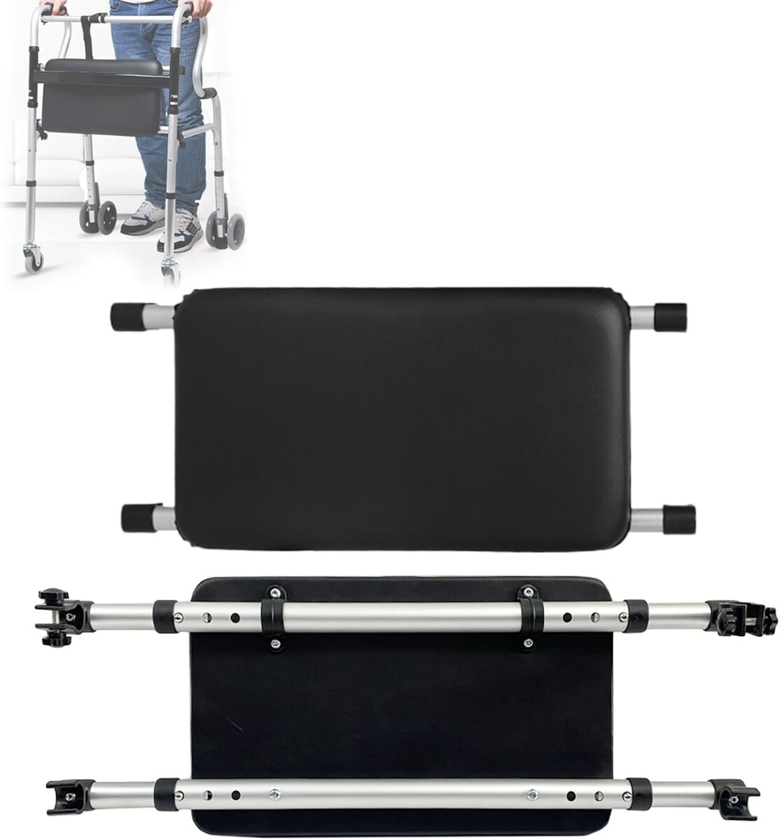 Experience the freedom to take a break whenever you need with our Adjustable Walker Rest Seat, designed for optimal comfort and usability. With a sleek black leather finish, this accessory not only provides a practical solution but also enhances the style of your walking aid.