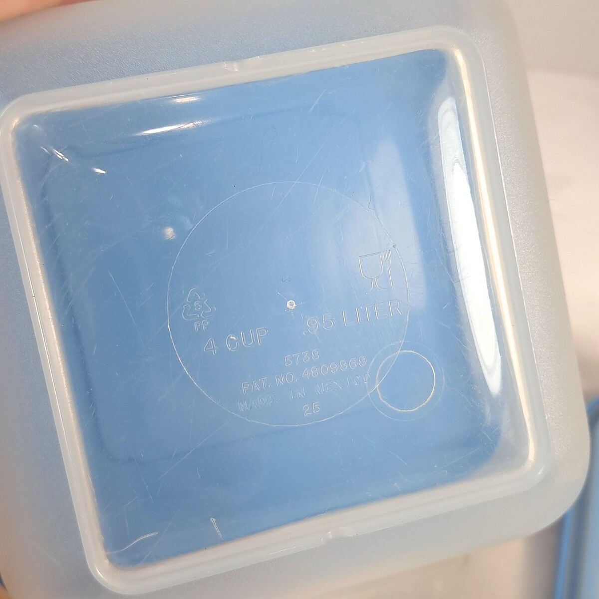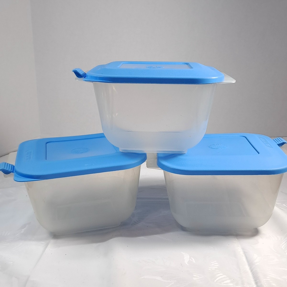 Vintage Anchor Hocking SET 3 Plastic Food Craft Storage square blue snap lid