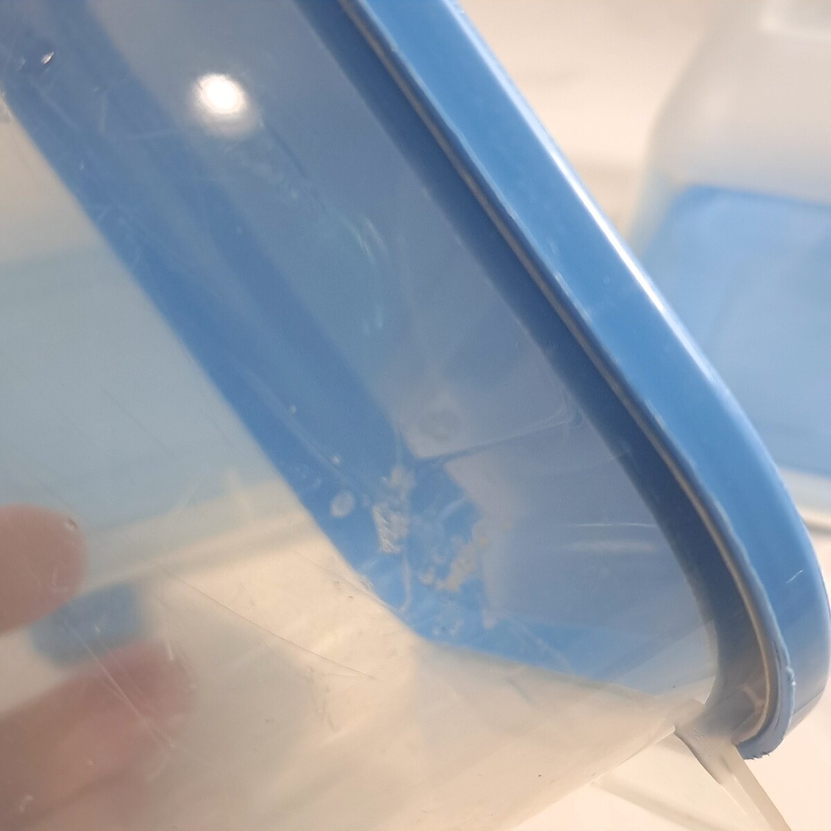 Includes 3 containers shown with lids. Good condition. Clear containers with snap type lid. Plastic wear/slight melting/scratches/light discoloration as shown. See pics.