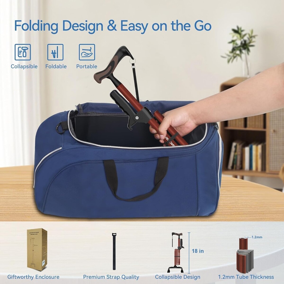 Adjustable Walking Cane with Second Handle - Lightweight Foldable for Seniors