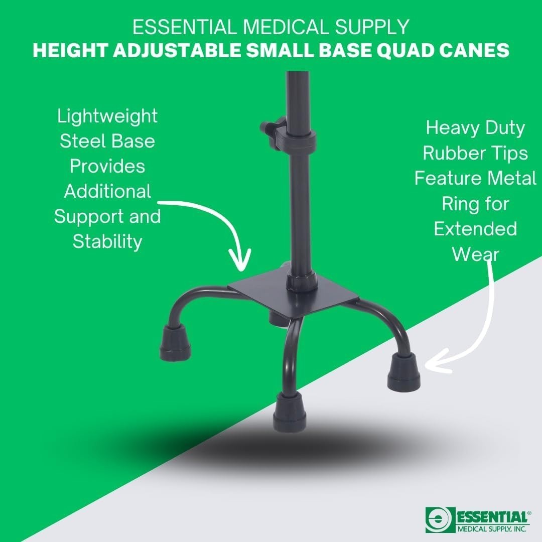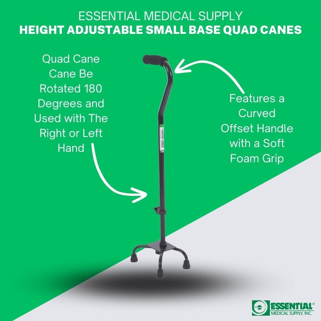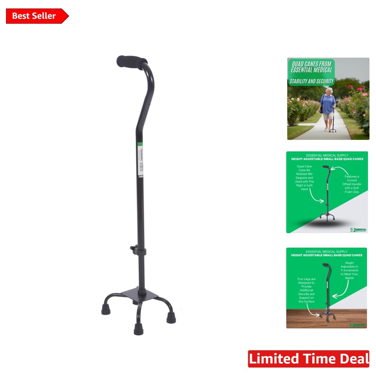 Lightweight Black Quad Cane - Height Adjustable for Ultimate Stability Comfort