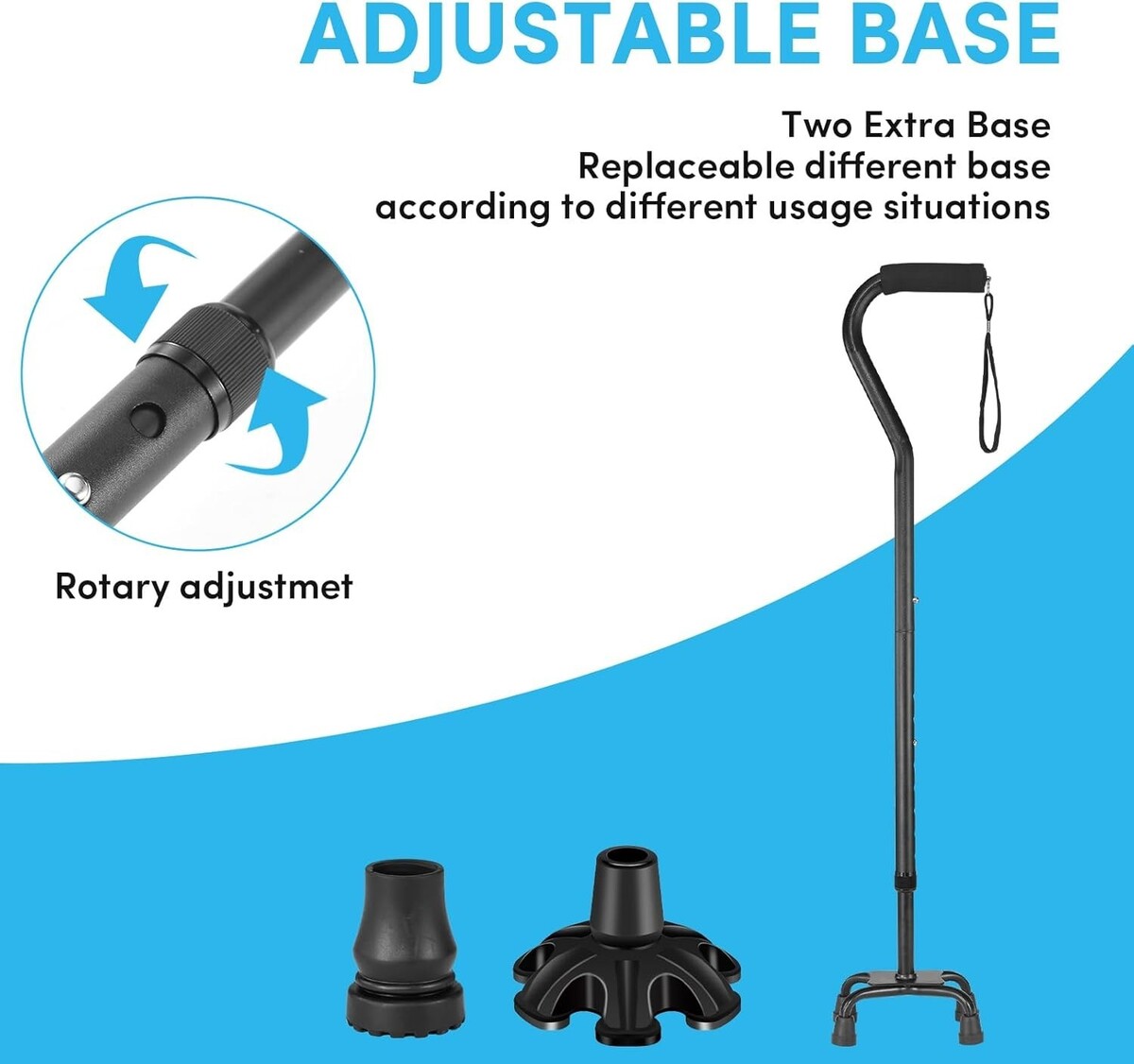 Versatile Cane Tips: Comes with two additional replaceable tips, allowing you to select the best option for your walking conditions.