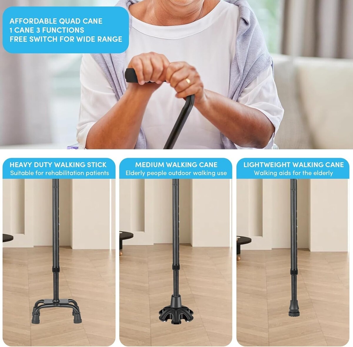 Don?t let mobility challenges slow you down?experience the empowering support of our 4-Pronged Stability Walking Cane. Order yours today and take the first step toward greater independence!