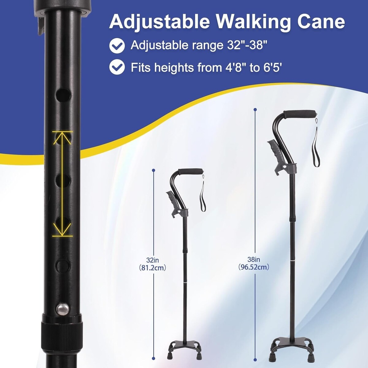 Experience increased mobility and independence with a sturdy walking cane that adapts to your needs.