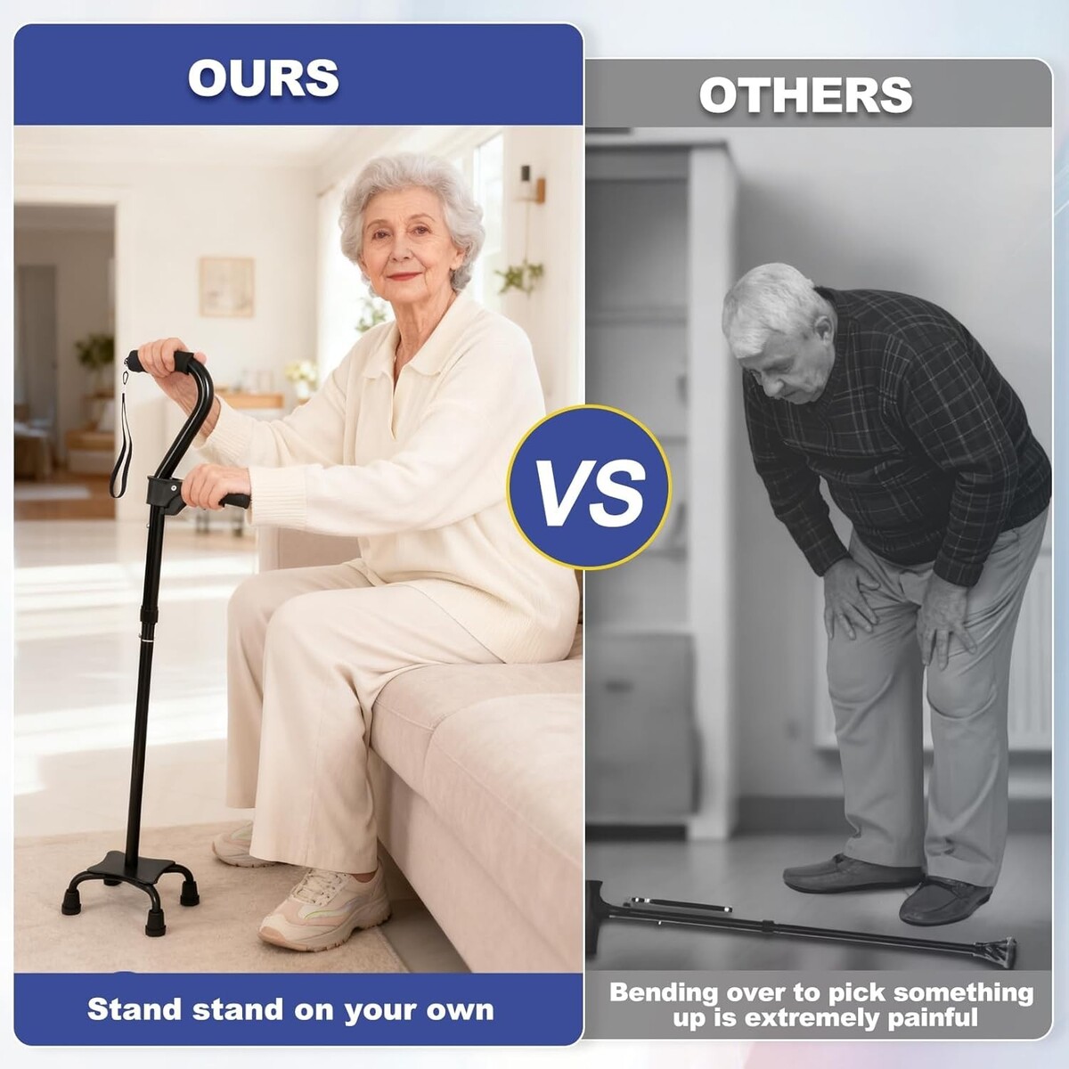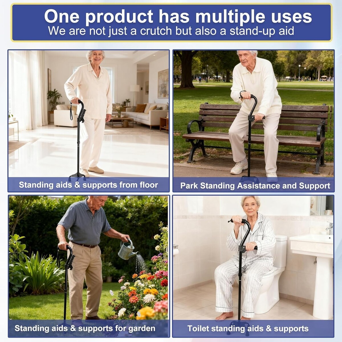 Elevate your quality of life with our Lightweight Stand Assist Aid for Seniors. It combines the best features of mobility aids into a single, innovative tool. Our ergonomic design not only assists in walking but revolutionizes how you transition from sitting to standing, offering you unparalleled support. Whether recovering from surgery or seeking stability, this cane becomes your trusted companion, ensuring each step taken is confident and steady.