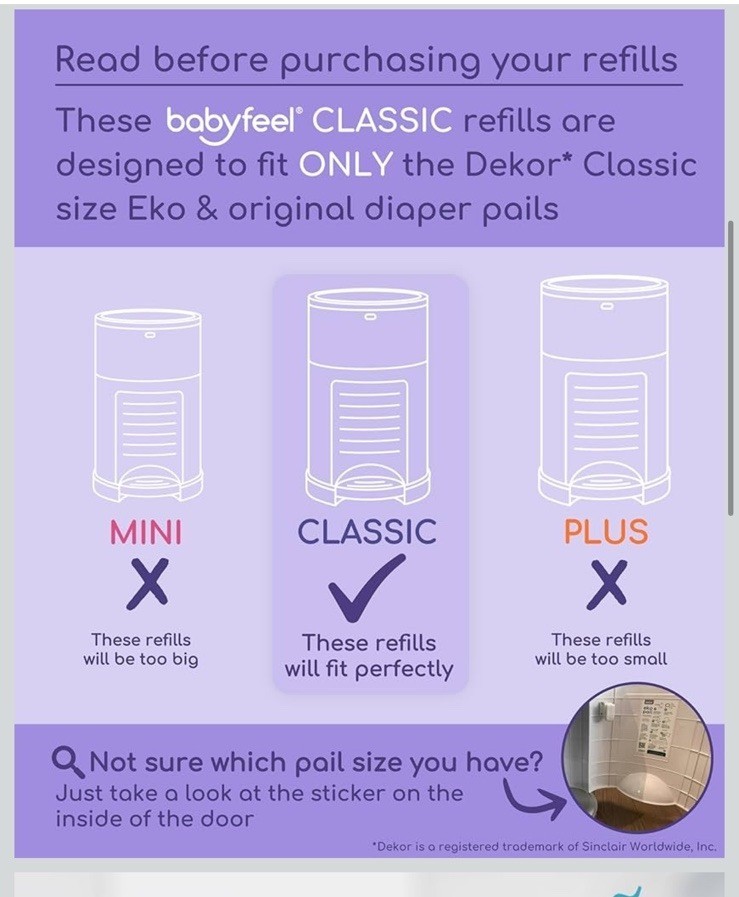 Babyfeel Refills for DEKOR PLUS Diaper Pails, 8 Pack