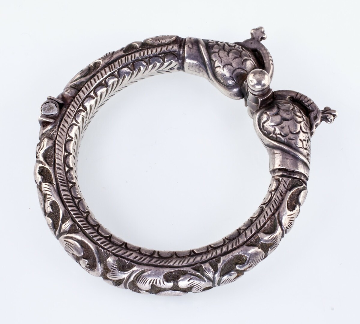 Vintage Tribal India Chitai Peacock Silver Cuff Bracelet, Hand Carved