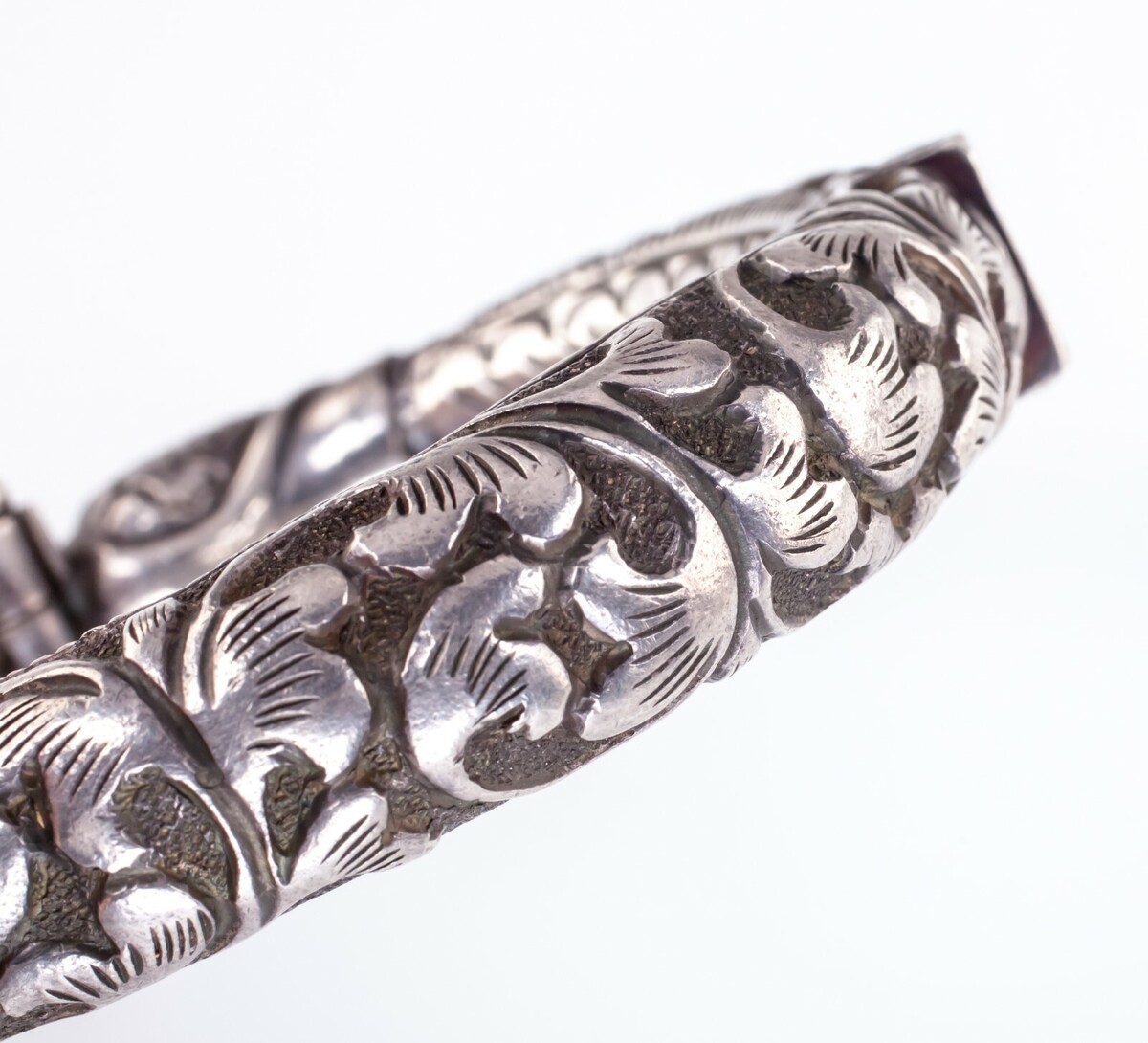 Vintage Tribal India Chitai Peacock Silver Cuff Bracelet, Hand Carved