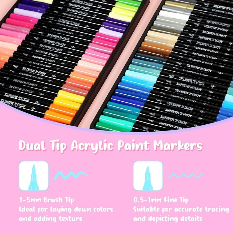 ?Versatile Dual-Tip Design?: Unleash your creativity with our acrylic markers featuring a unique dual-tip design. The extra-fine tip is perfect for intricate details, while the brush tip allows for expressive brushstrokes. From delicate line work to bold sweeps, these markers adapt effortlessly to your artistic vision.