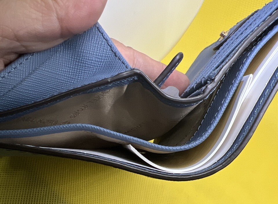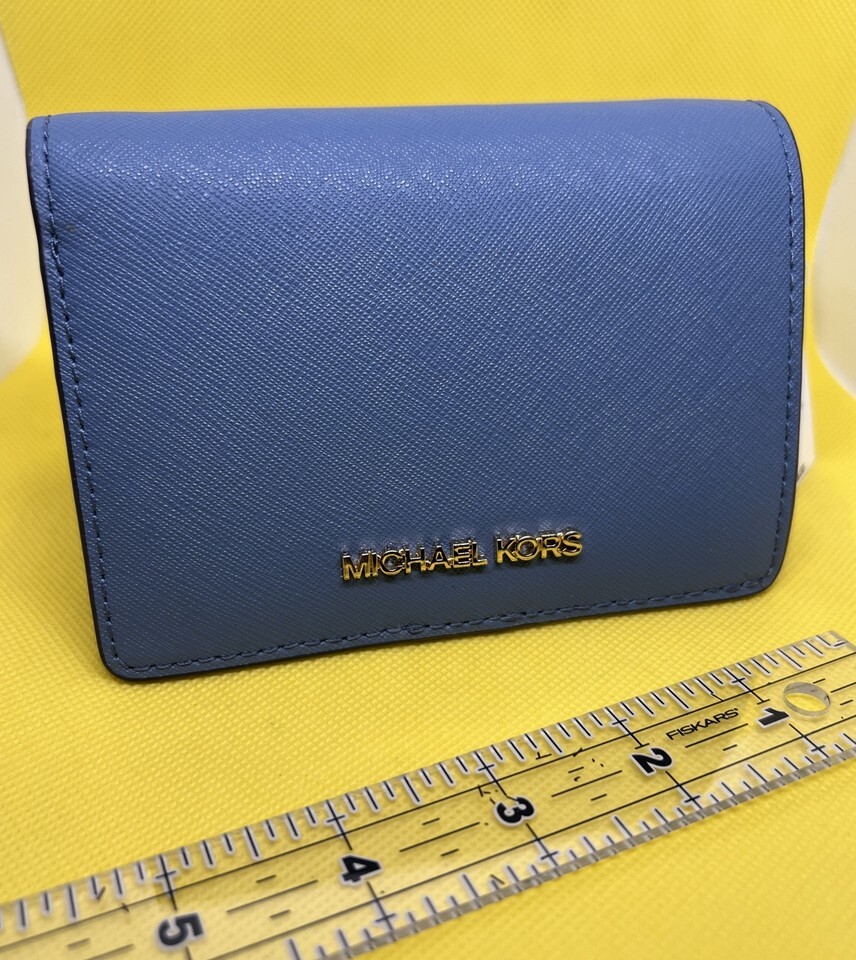 Michael Kors Jet Set Crossgrain Leather Medium Slim Bifold Wallet Color Sun NWT