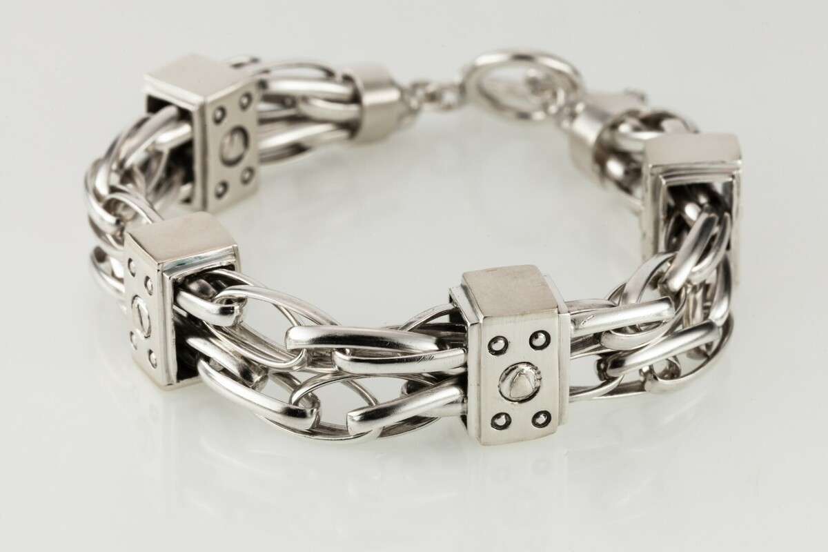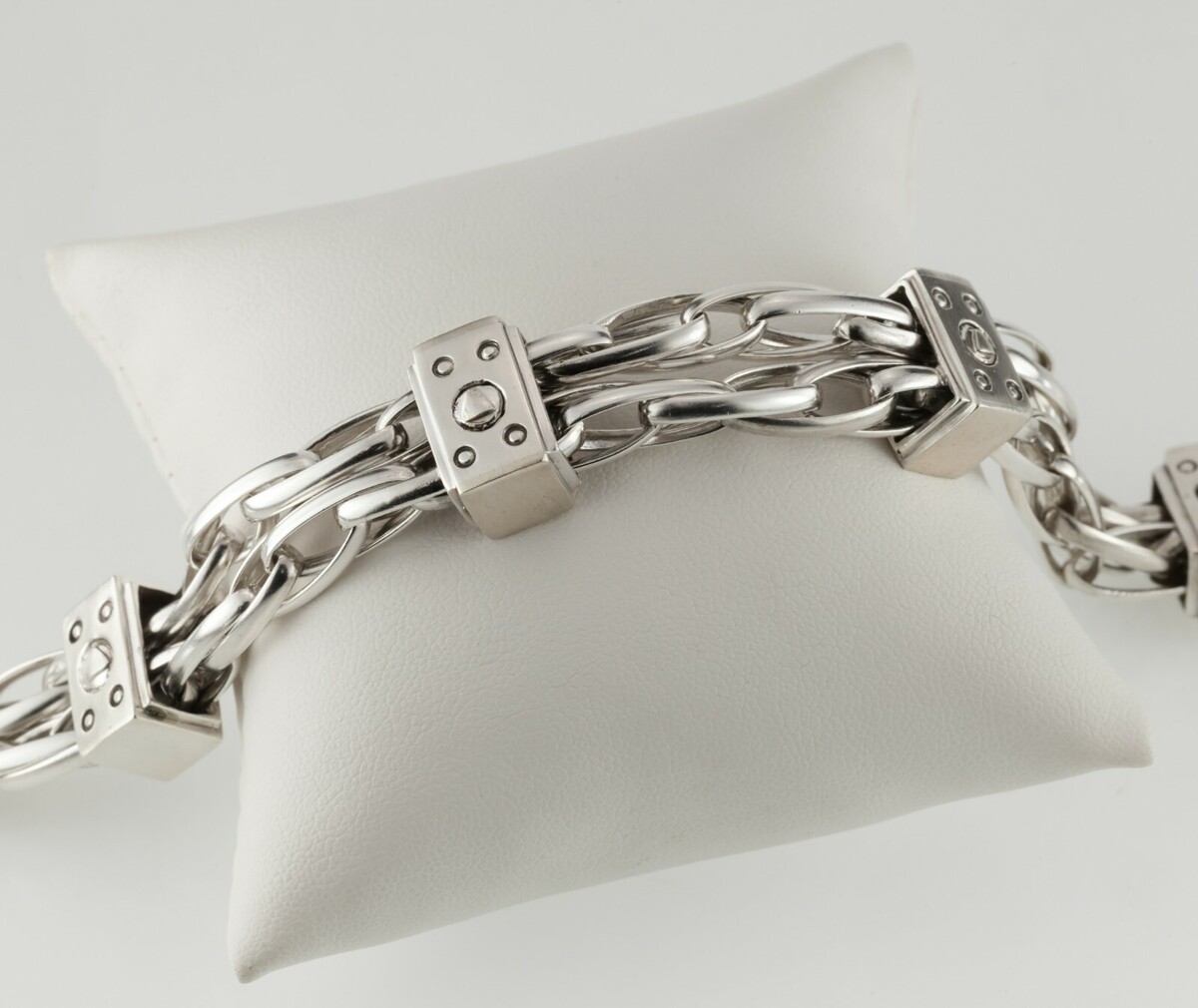 Gorgeous Double-Strand Multi-Link Sterling Silver Bracelet w/ Box Accents and Toggle Clasp