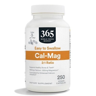 10/27 365 by Whole Foods Market, Cal-Mag 2:1 Ratio, Easy-to-Swallow Vegan Capsules, 250 Count