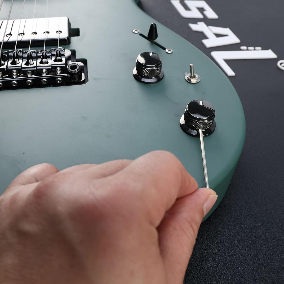 Precise Adjustment: The bass guitar volume and tone knobs can be fixed by inserting a small wrench into the adjustment screw holes, enabling you to easily and precisely control the tone and volume. It is suitable for most potentiometers