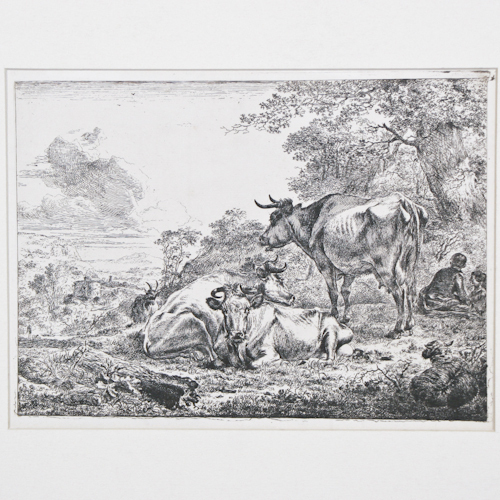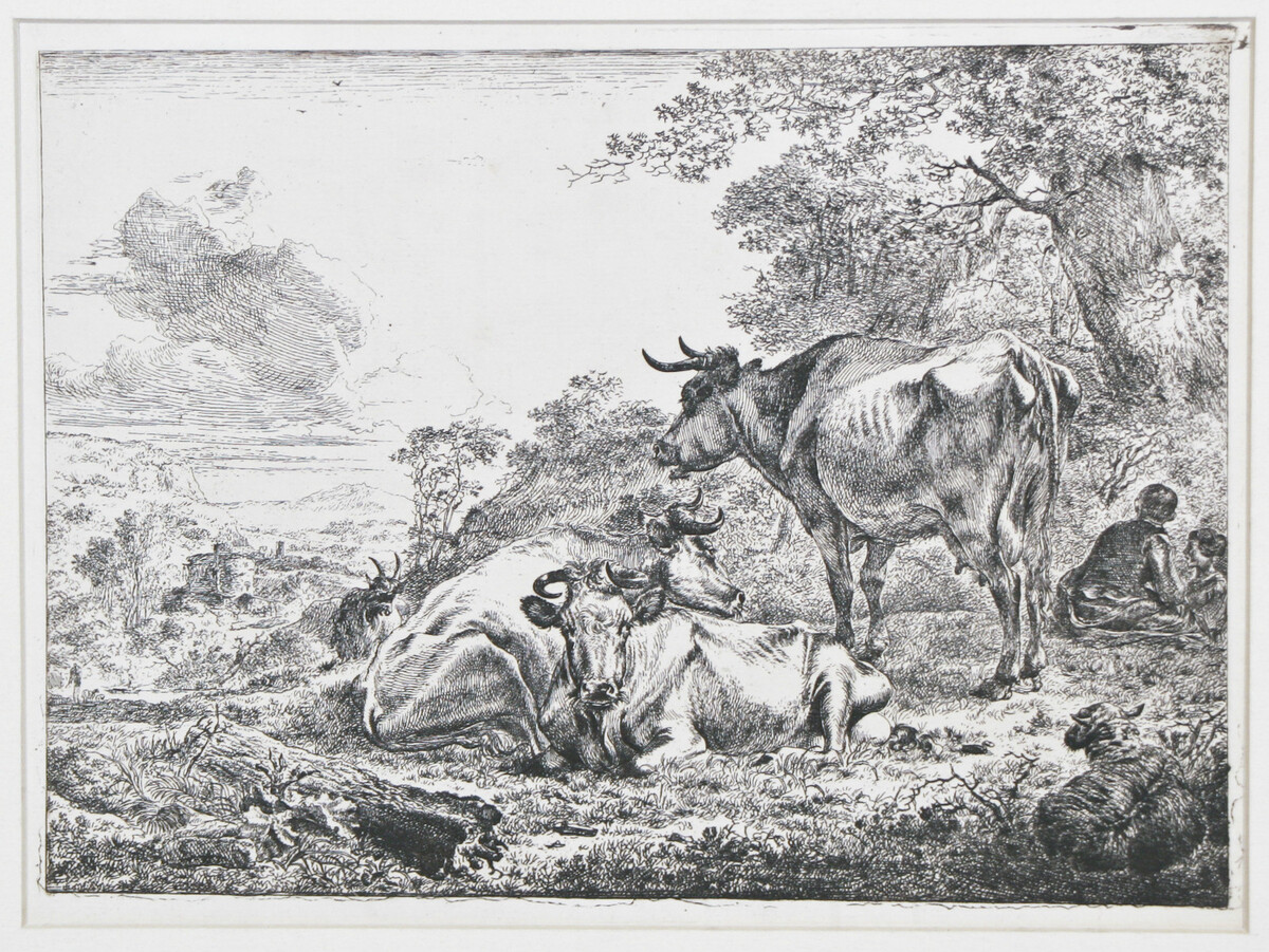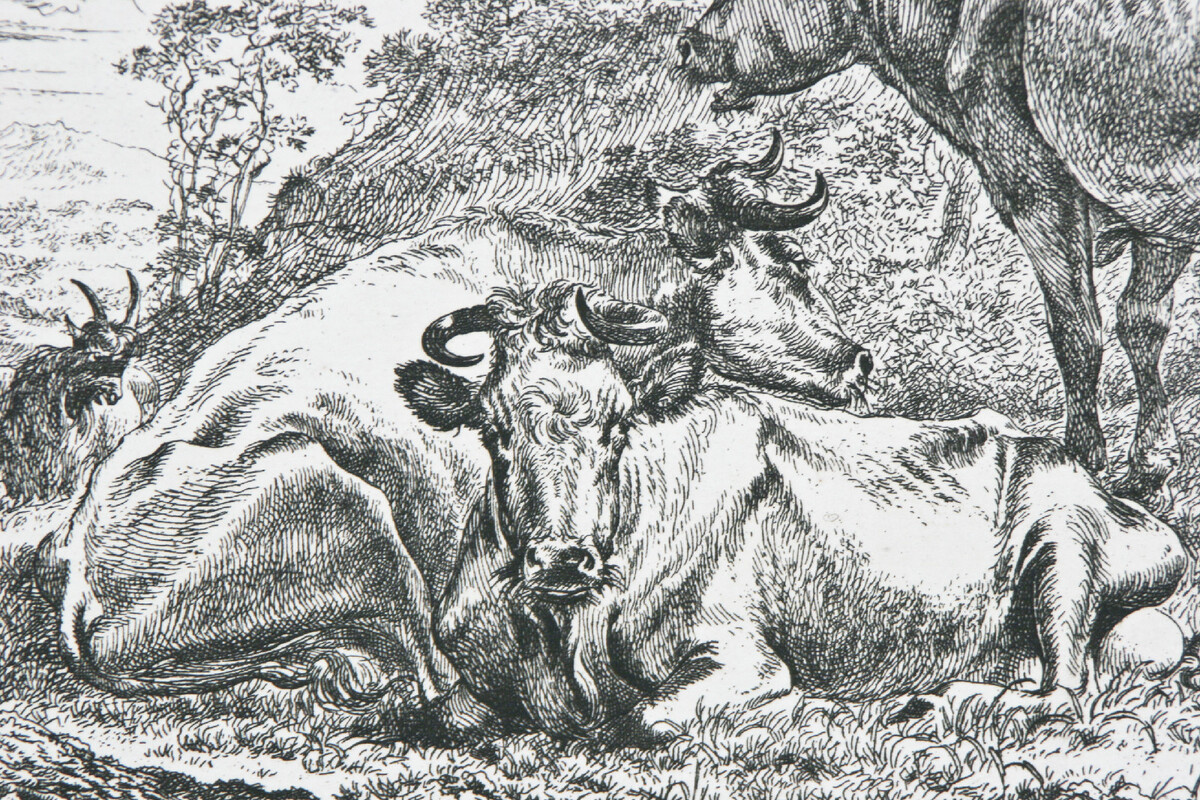 Acquaforte "Tre mucche che riposano" di Nicholas Berchem