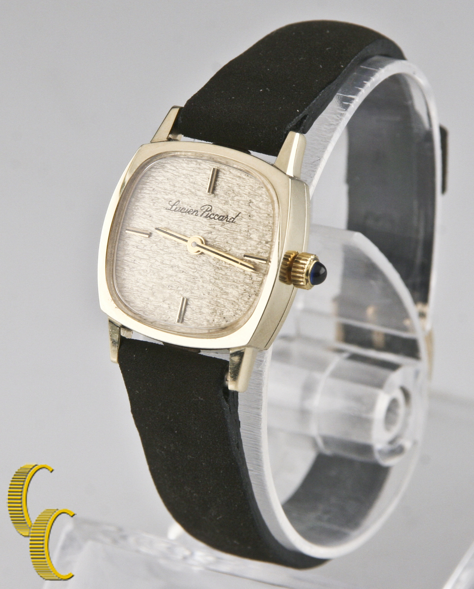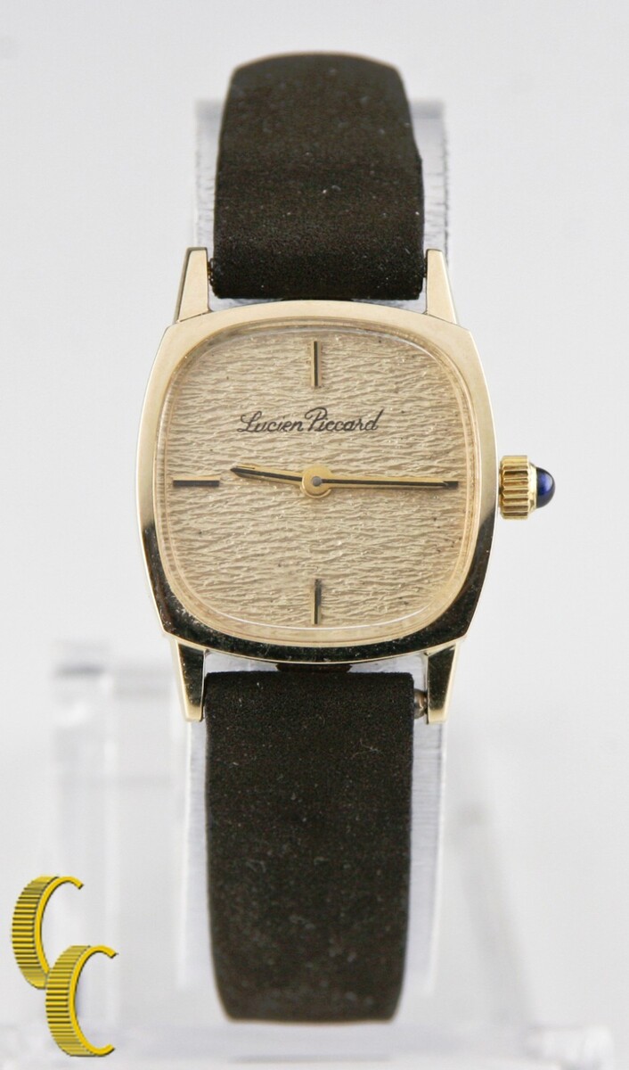 14k Oro Giallo Lucien Piccard Donna Mano-Avvolgimento Orologio W/ Pelle Fascia