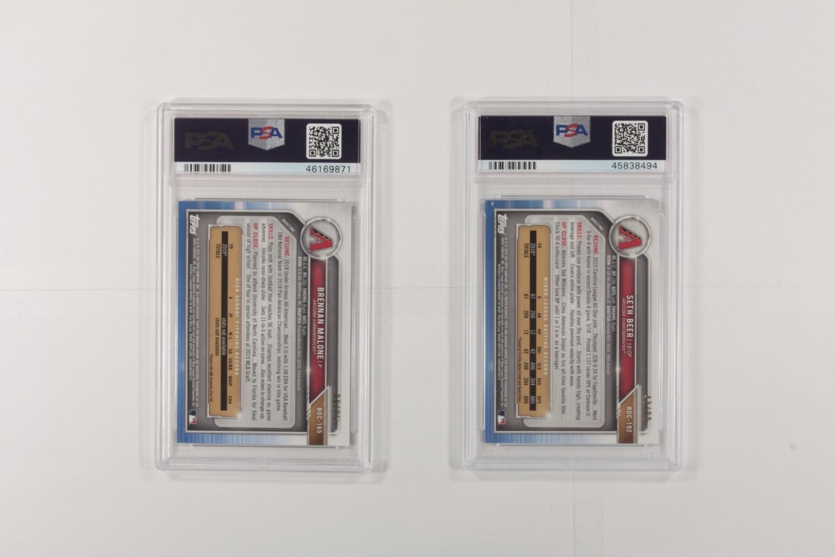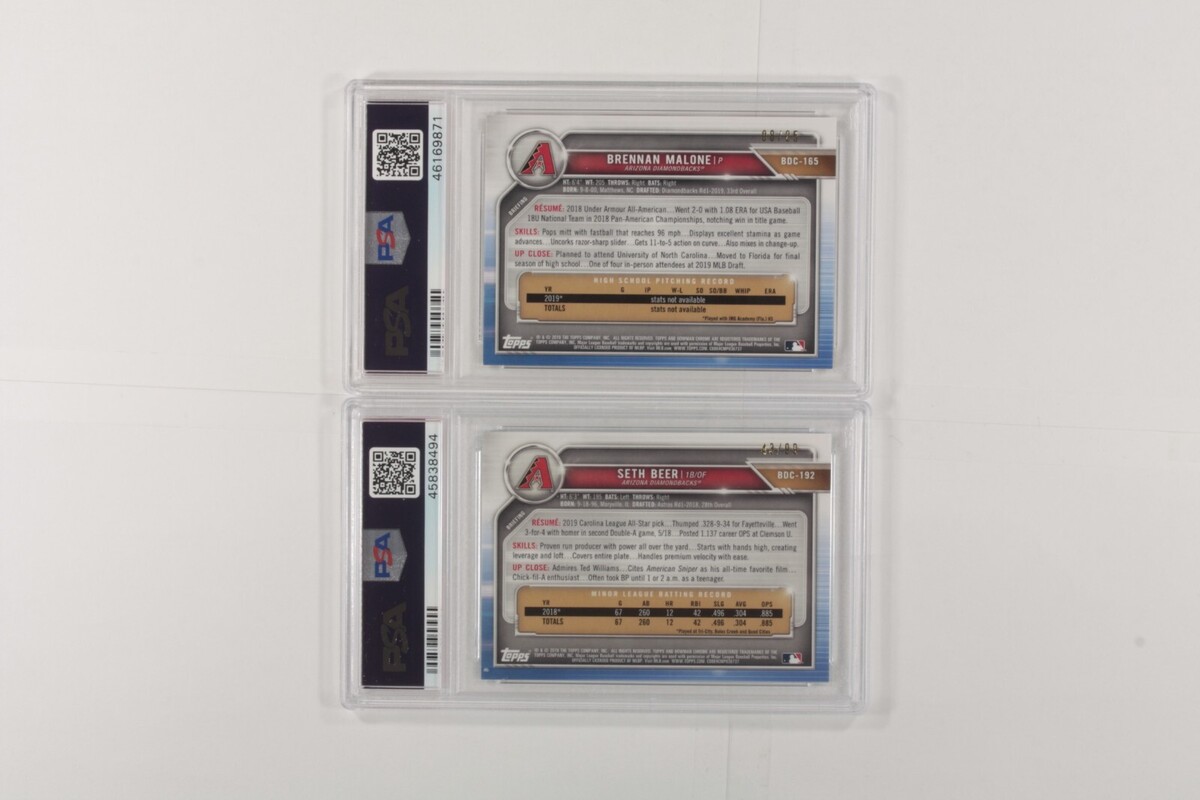 Lot 2 PSA 10 2019 Bowman Chrome Draft Sapphire Edition Seth Beer, Brennan Malone