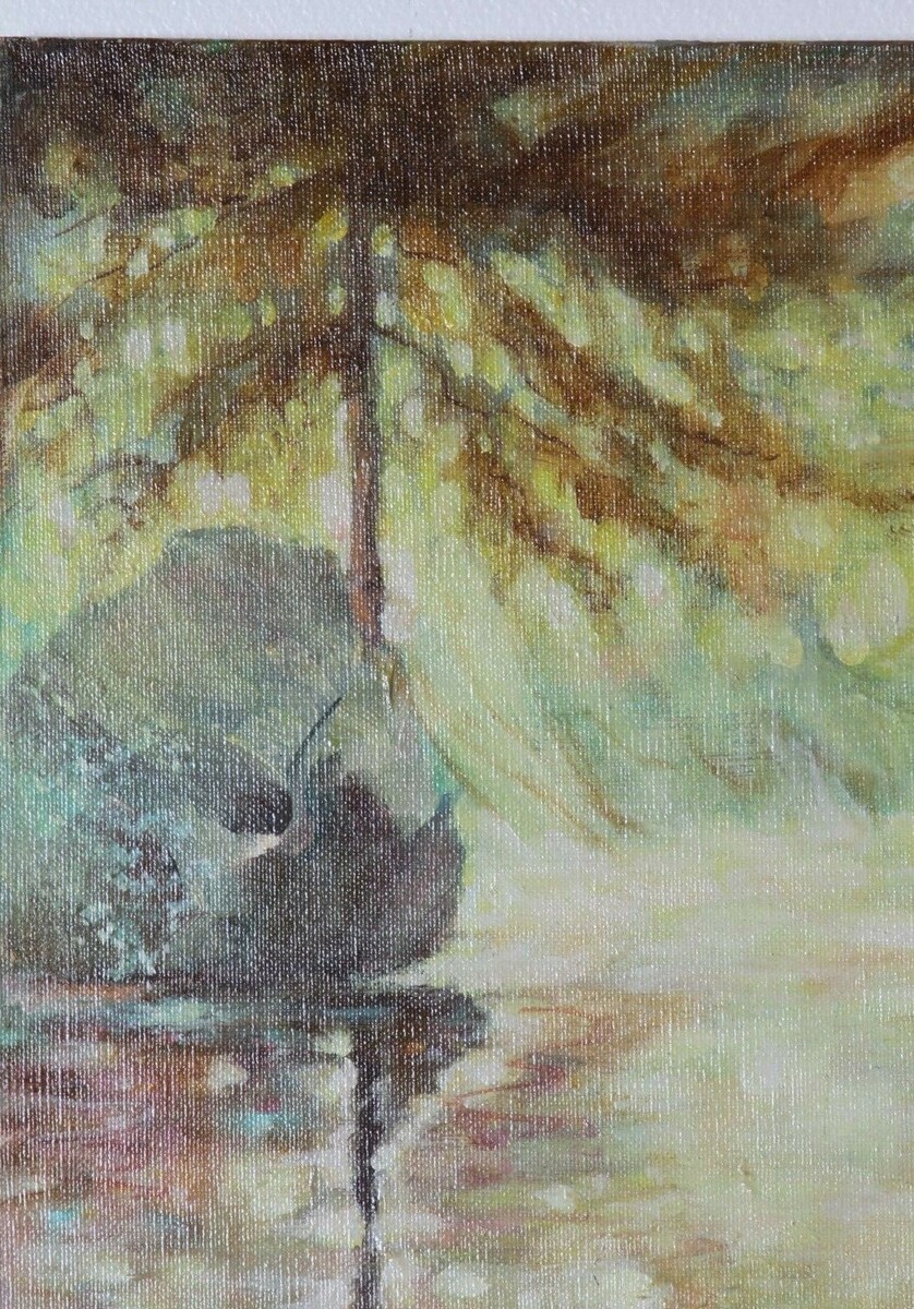 Beaute Au Bord Du Lac Par Anthony Sidoni 1997 Huile Sur Toile 18 1/2"x22 1/4"