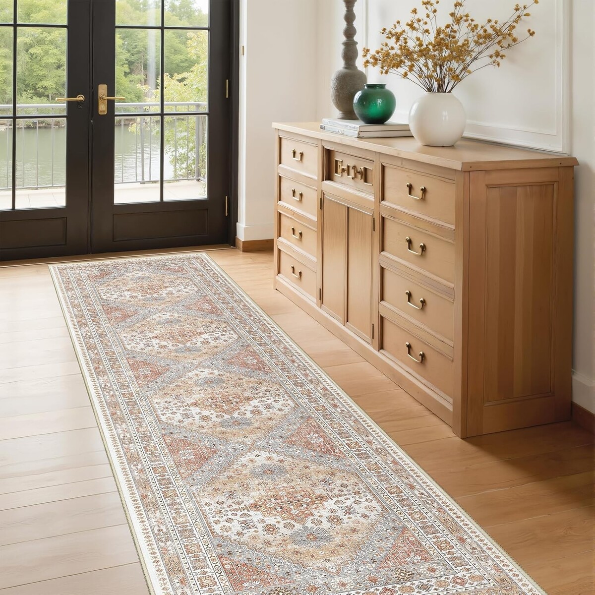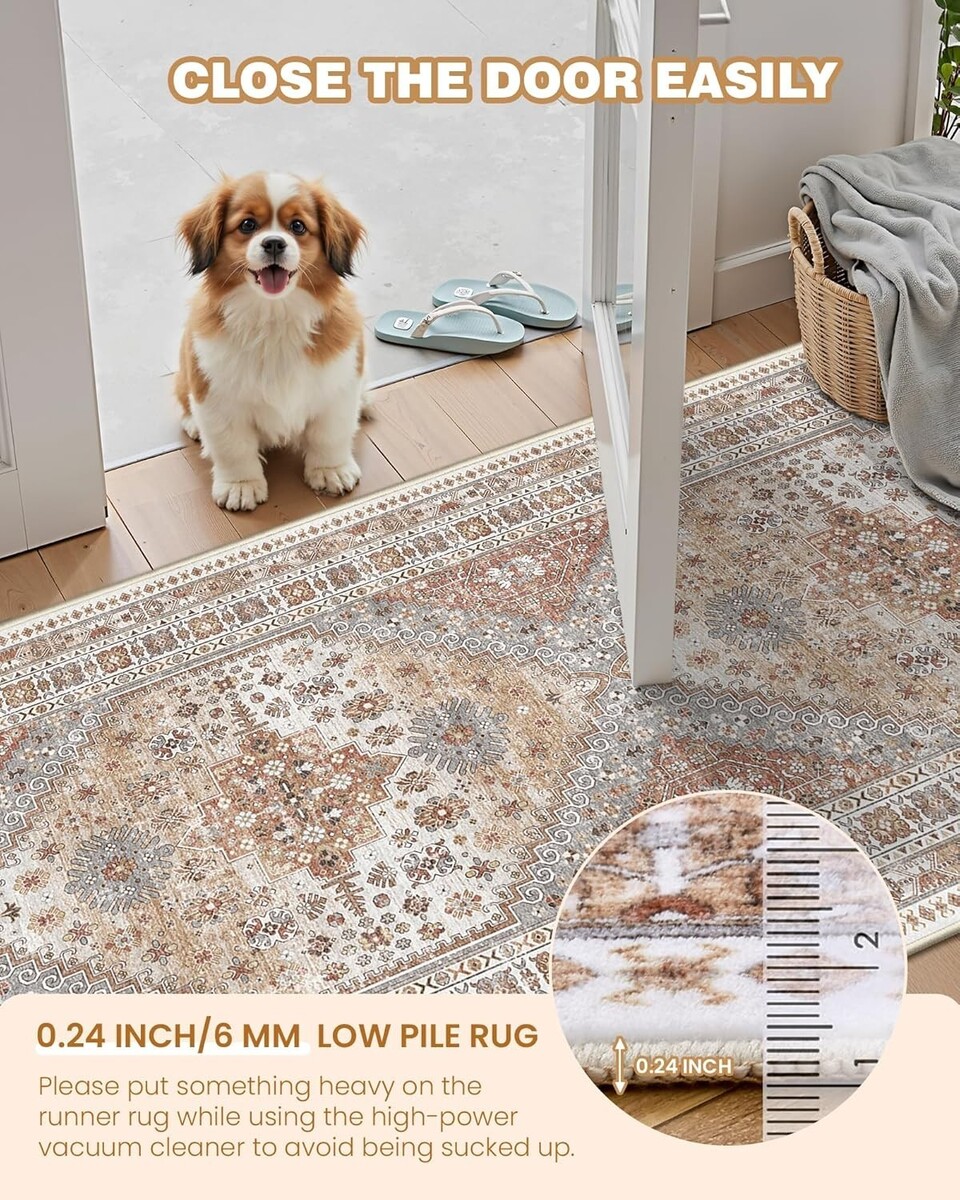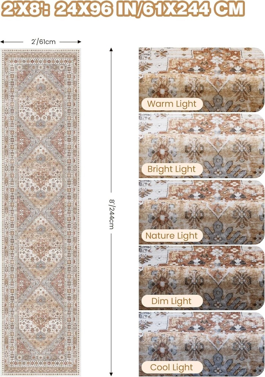 Elegant Orange 2x8 Hallway Runner Rug - Stain Resistant & Low Pile Comfort