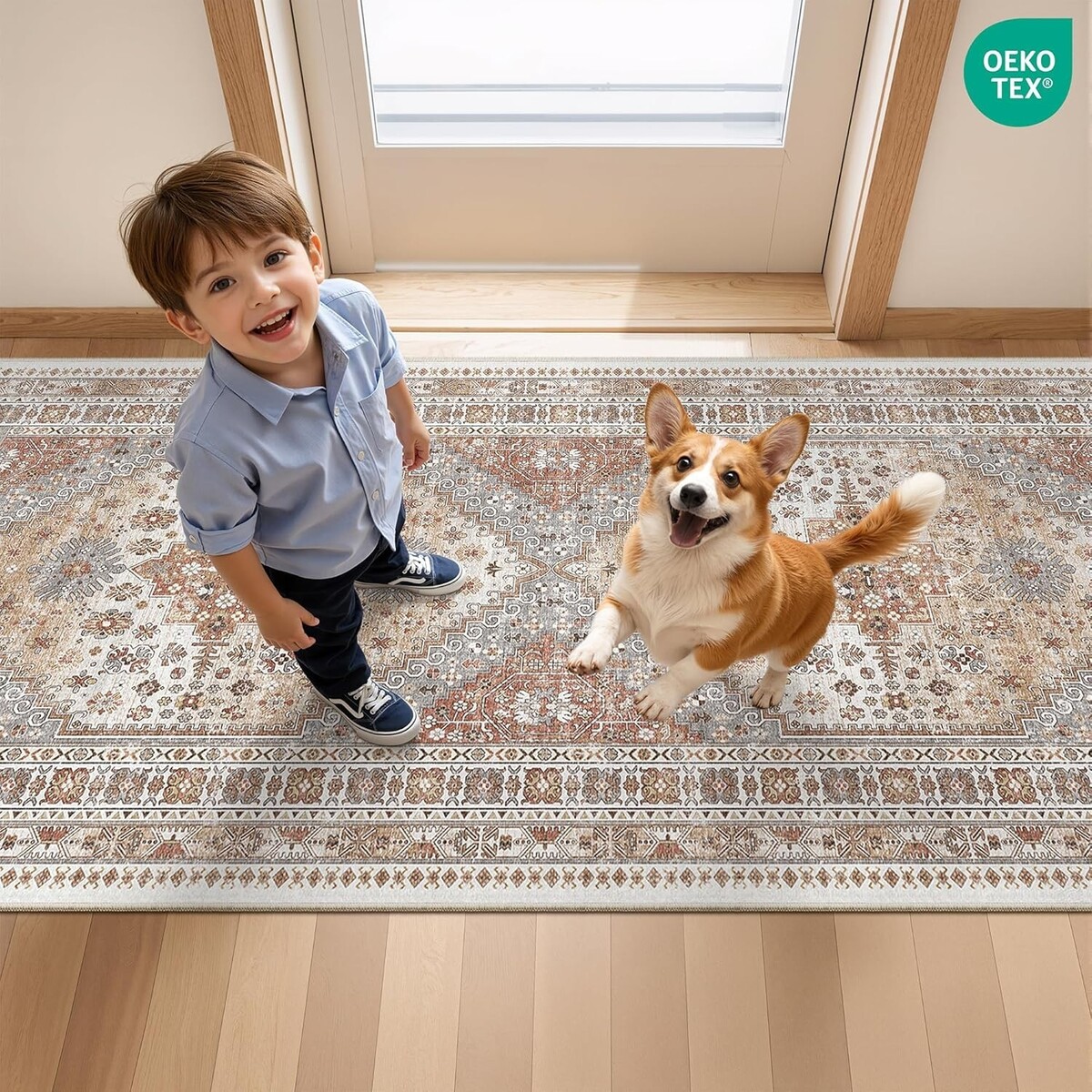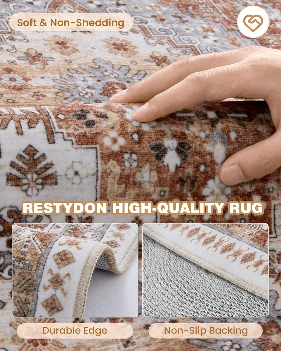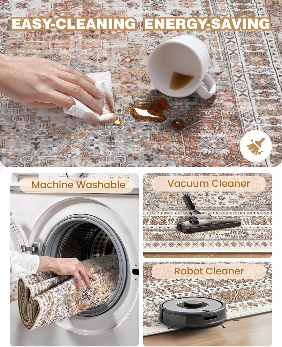 Elegant Orange 2x8 Hallway Runner Rug - Stain Resistant & Low Pile Comfort