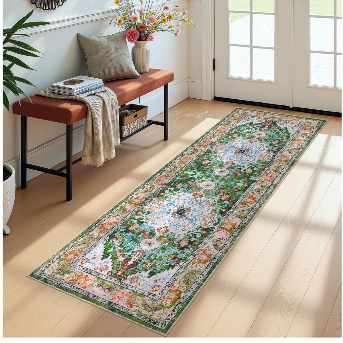 Elevate your home with the Chic Vintage Green Non-Slip Hallway Runner Rug, where style meets substance. This rug not only enhances your decor with its elegant design and colors, but it also prioritizes comfort and safety. Perfect for any busy household, it's the ideal blend of beauty and practicality that you'll cherish for to come.