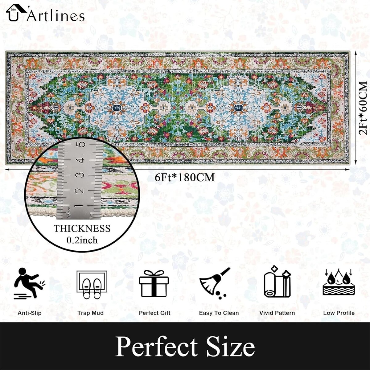 Chic 2' x 6' Vintage Green Non-Slip Hallway Runner Rug - Perfect for Home Decor
