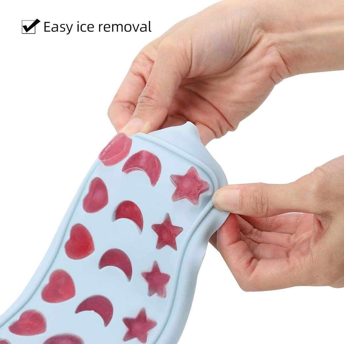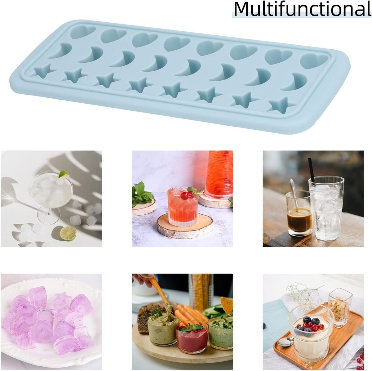 24 cavities in fun shapes: heart, star, and moon for a whimsical twist on your beverages.