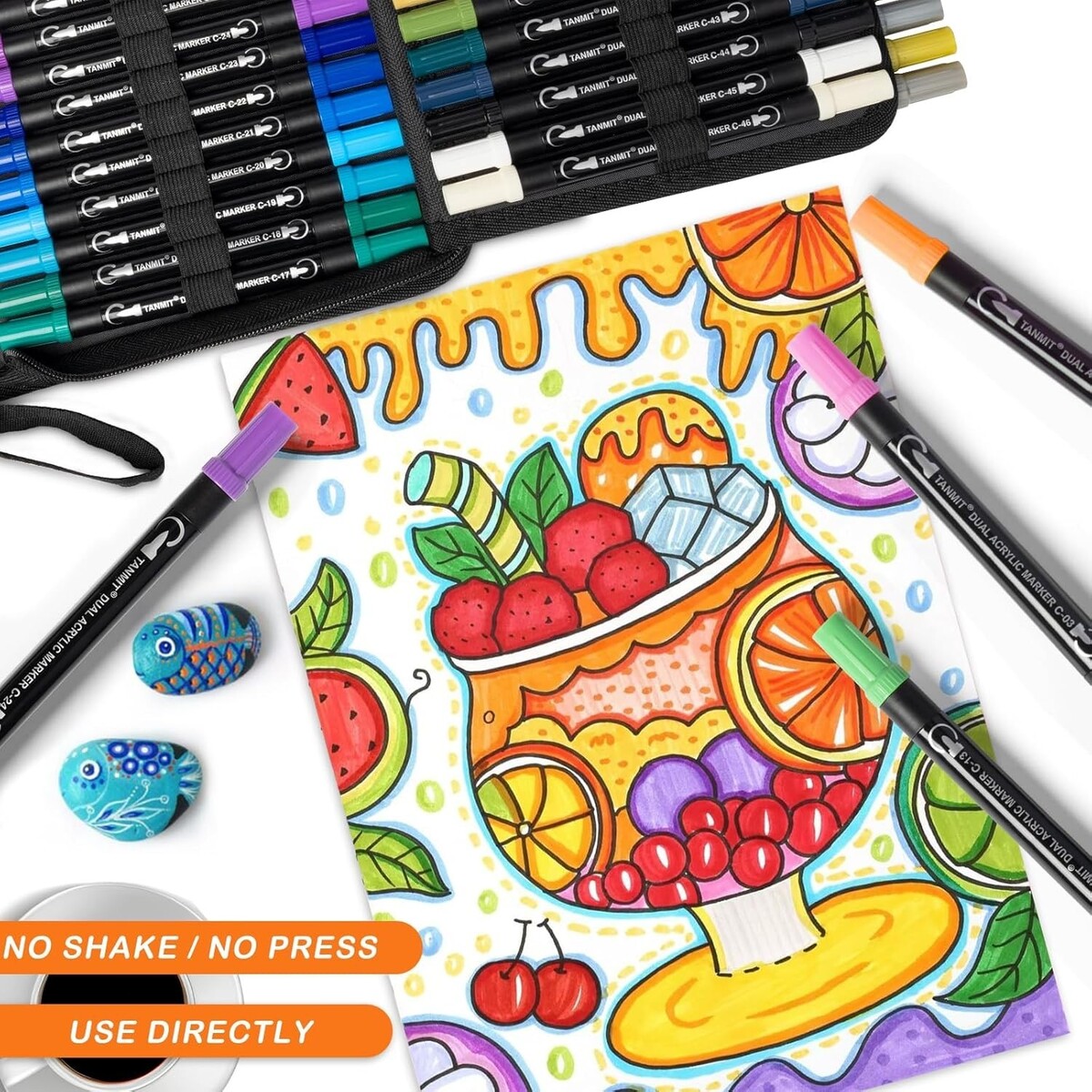 Non-Toxic 60-Color Acrylic Paint Markers with Brush & Fine Tips for All Ages