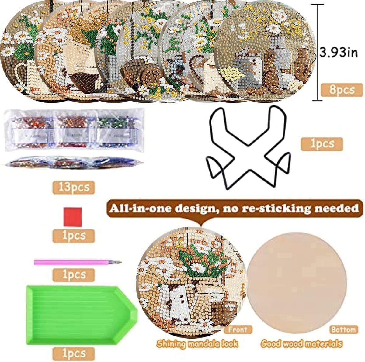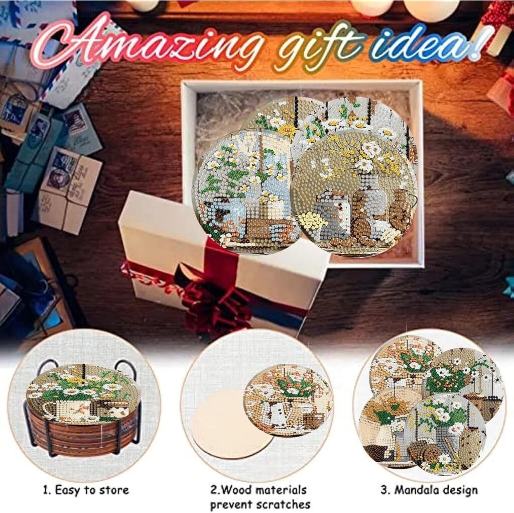 Don't miss the opportunity to create something wonderful?order your 8 PCS Rustic Farmhouse Daisy Diamond Art Coasters Set today, and bring a warm, artistic touch to your living space!