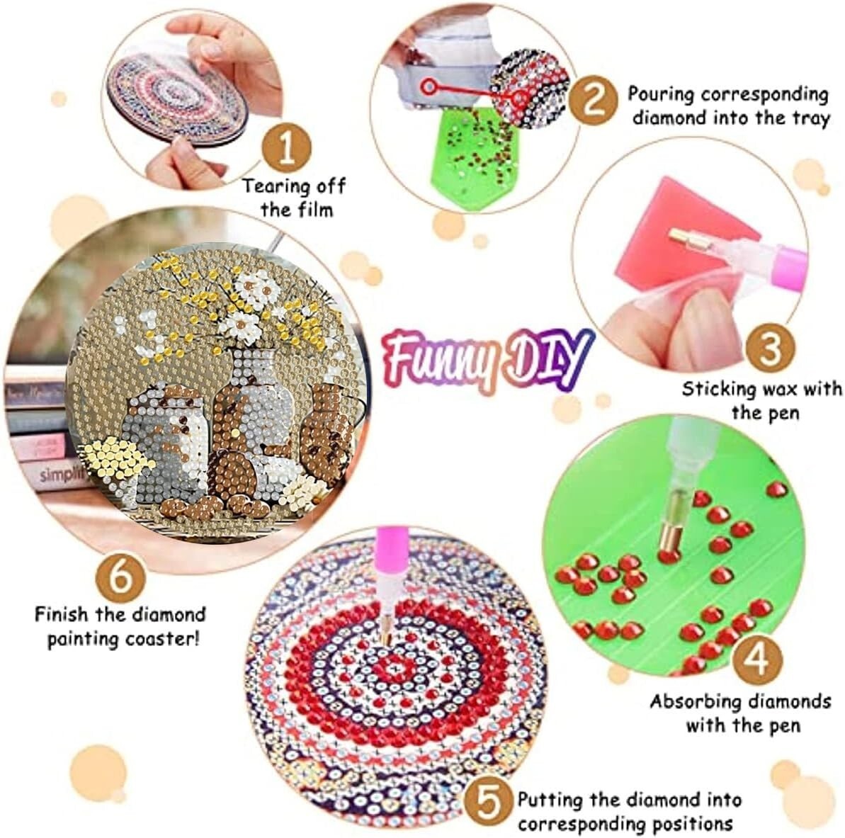 High-Quality Materials: Crafted from thickened wood to ensure durability. Each coaster is designed to withstand the of time and maintain its allure with a diamond paint sealer.