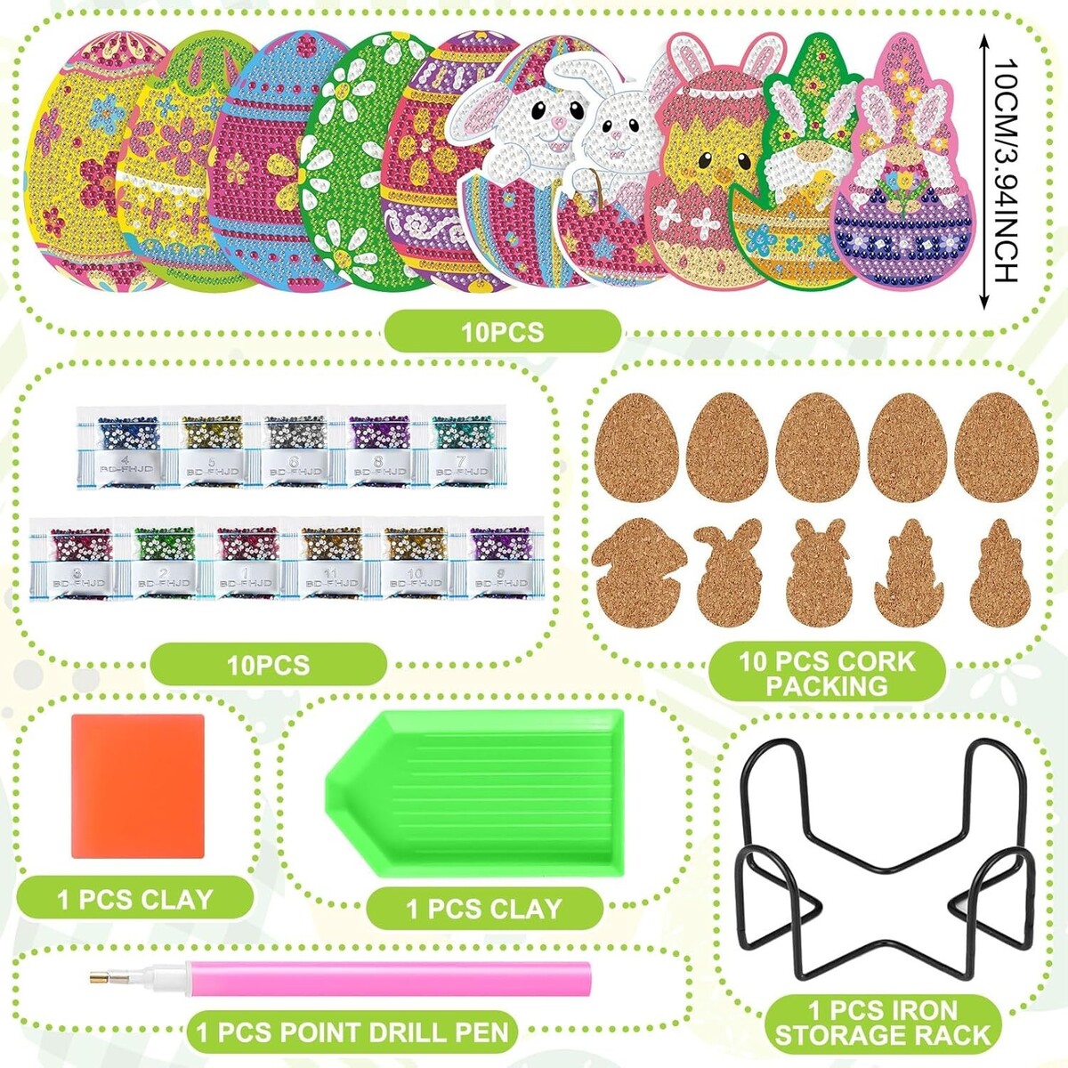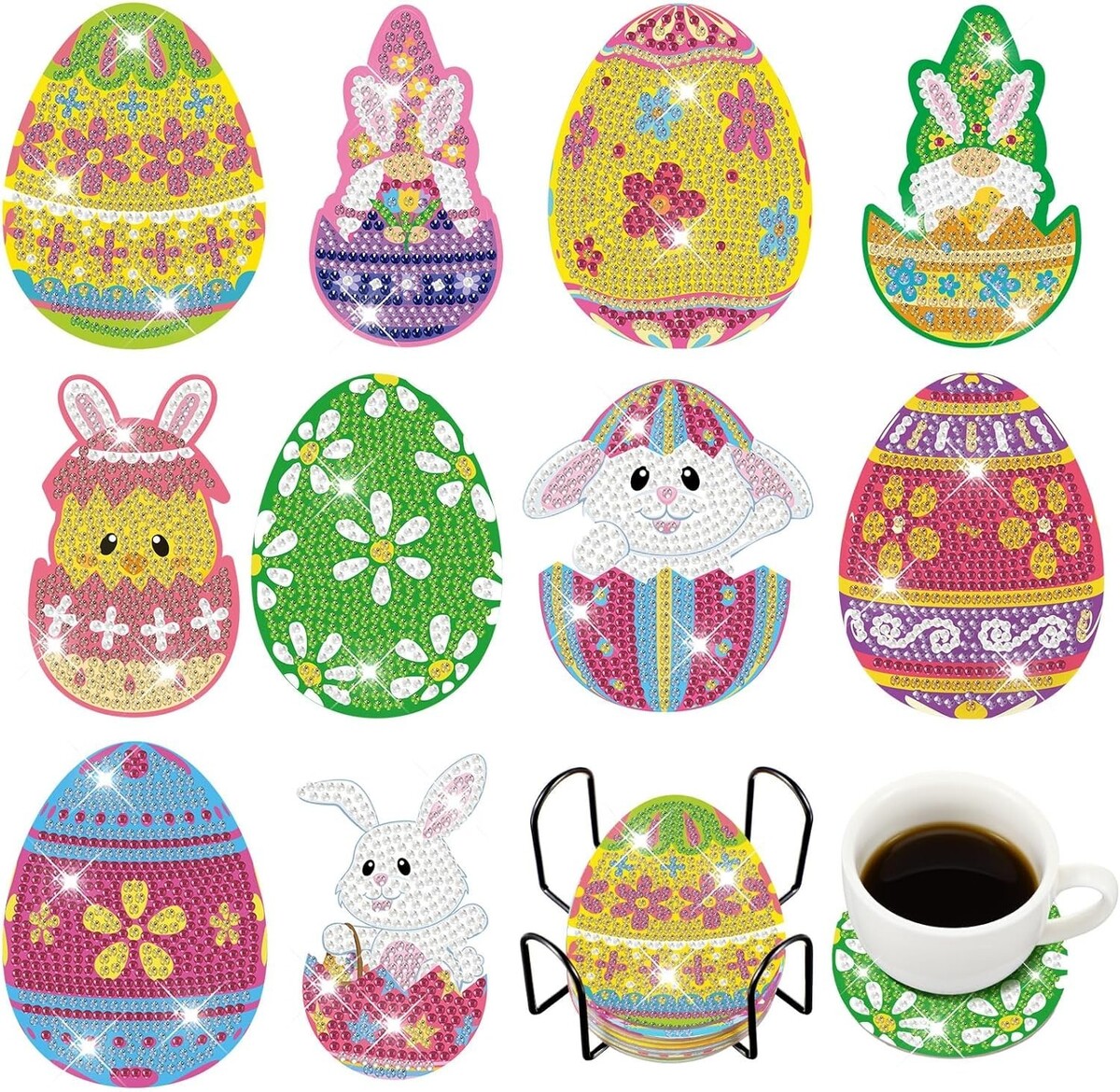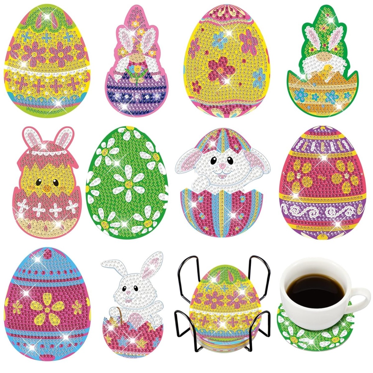 10 Pcs Easter Diamond Painting Coasters Kit - Fun DIY Craft for Home Decor