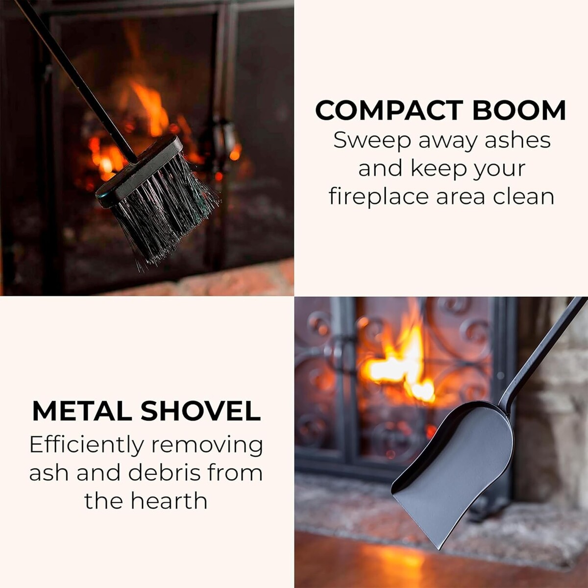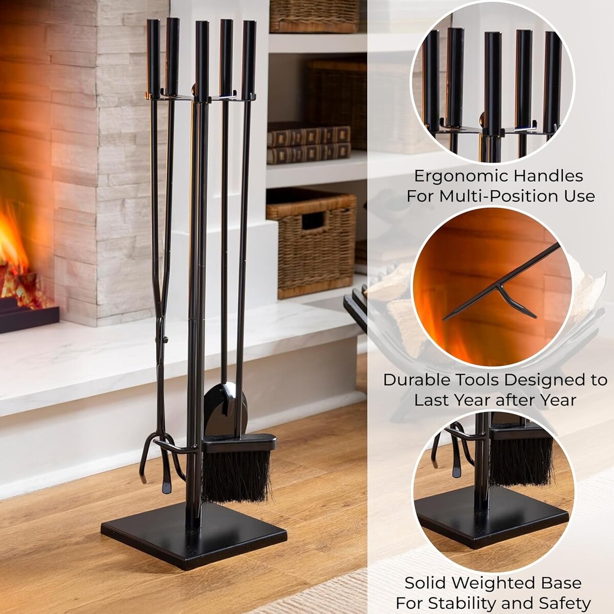 Sturdy construction ensures tools can withstand the demands of fireplace and outdoor use.