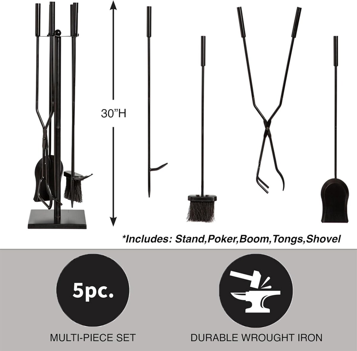 Items Included: Brush,Shovel,Stand,Tongs,Poker