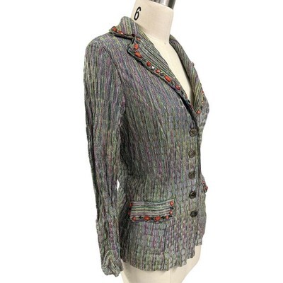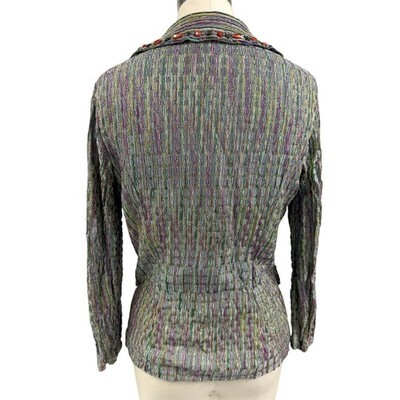 VTG Alberto Makali Multi-Color Metallic Blazer Gem Trim Y2K Boho Glam Jacket M