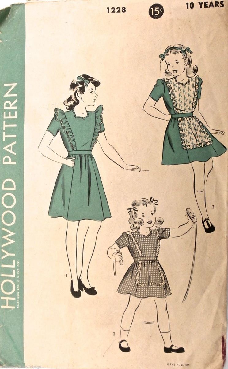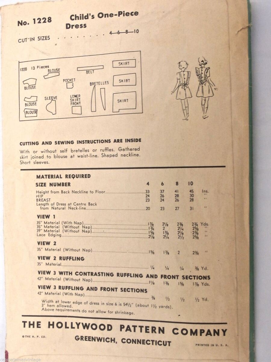 Vtg 1940s Sewing Pattern Hollywood #1228 Child's Dress 10 Years