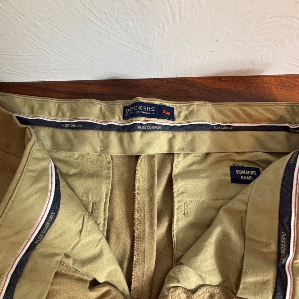 Dockers Signature Khaki Slim Fit Flex Comfort Pants Tan 32x32 59407-0007 Mens