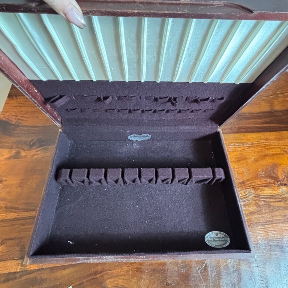 Vintage Nobility Plate Wooden Silverware Chest Purple Felt Lined Flatware Box