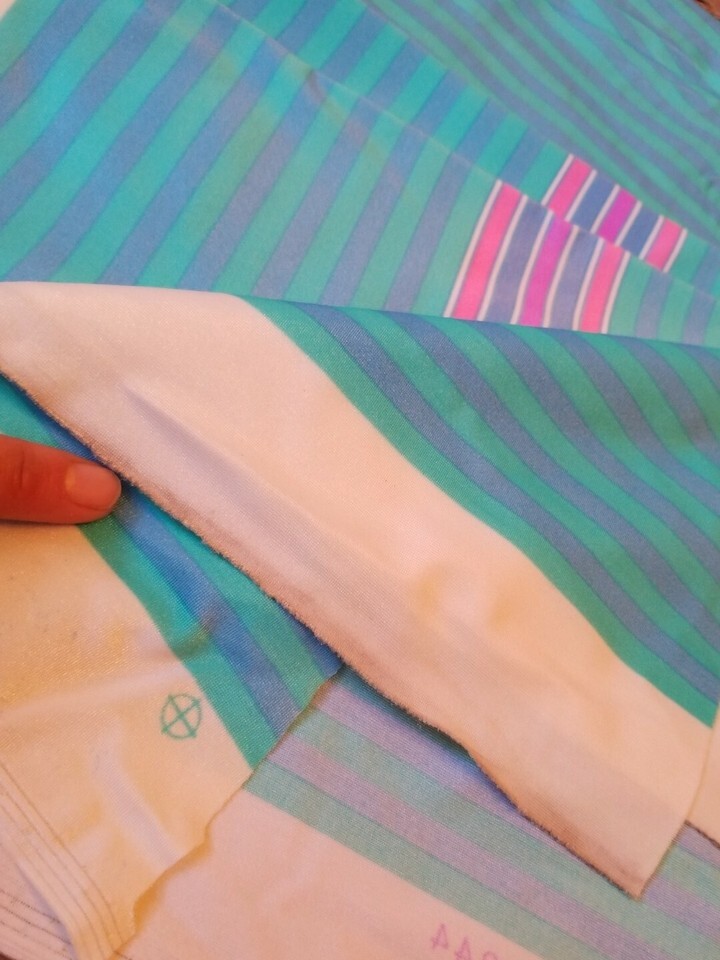 vintage 70s Lunada bay fabric stretch swimsuit Wear striped teal blue 60"X54"