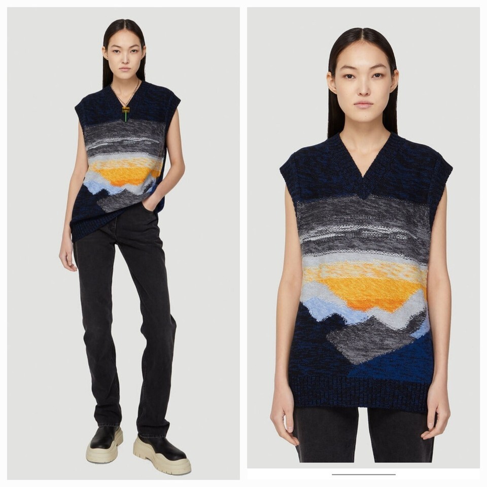 ACNE STUDIOS Koris Intarsia Sunset Sweater Wool Vest Size L $565