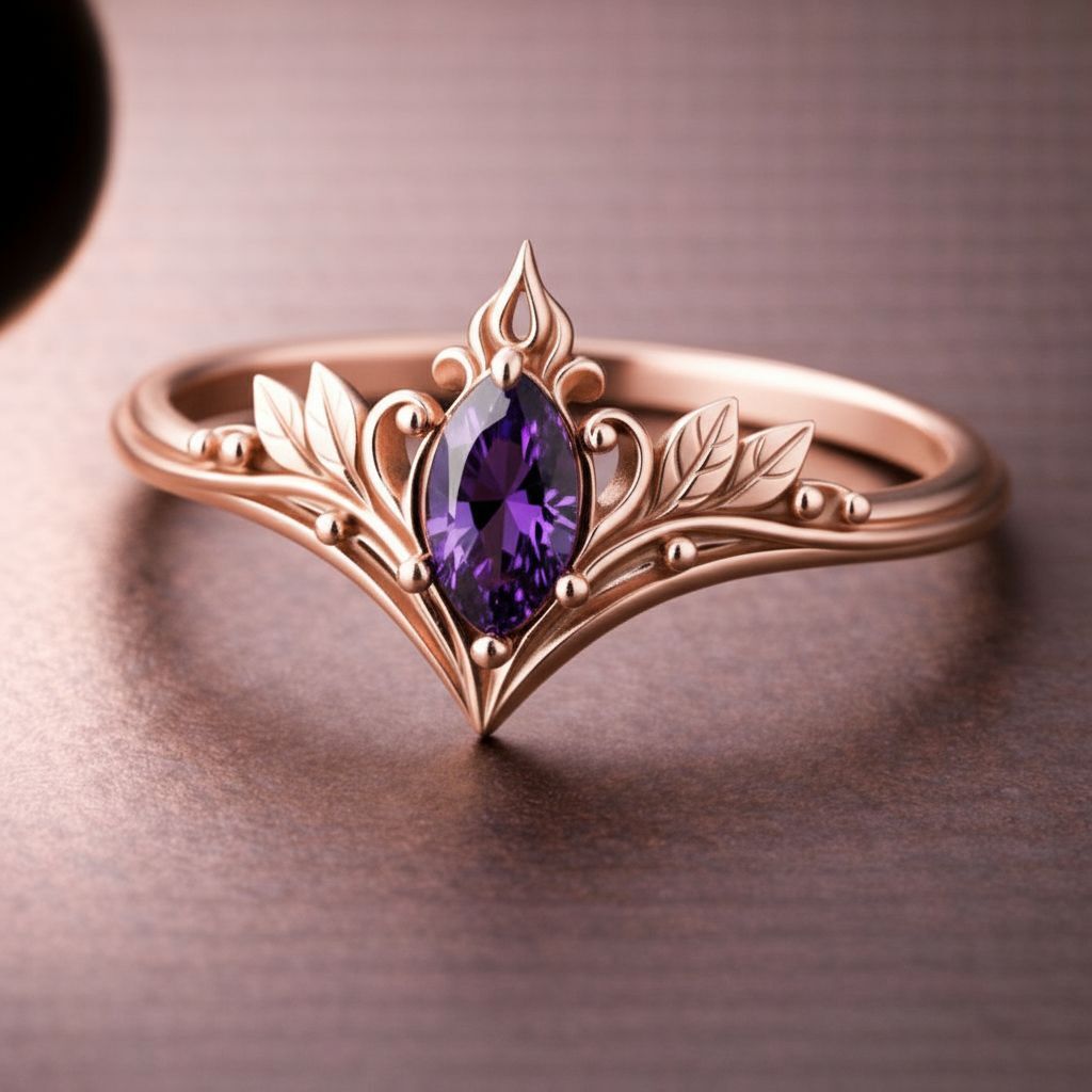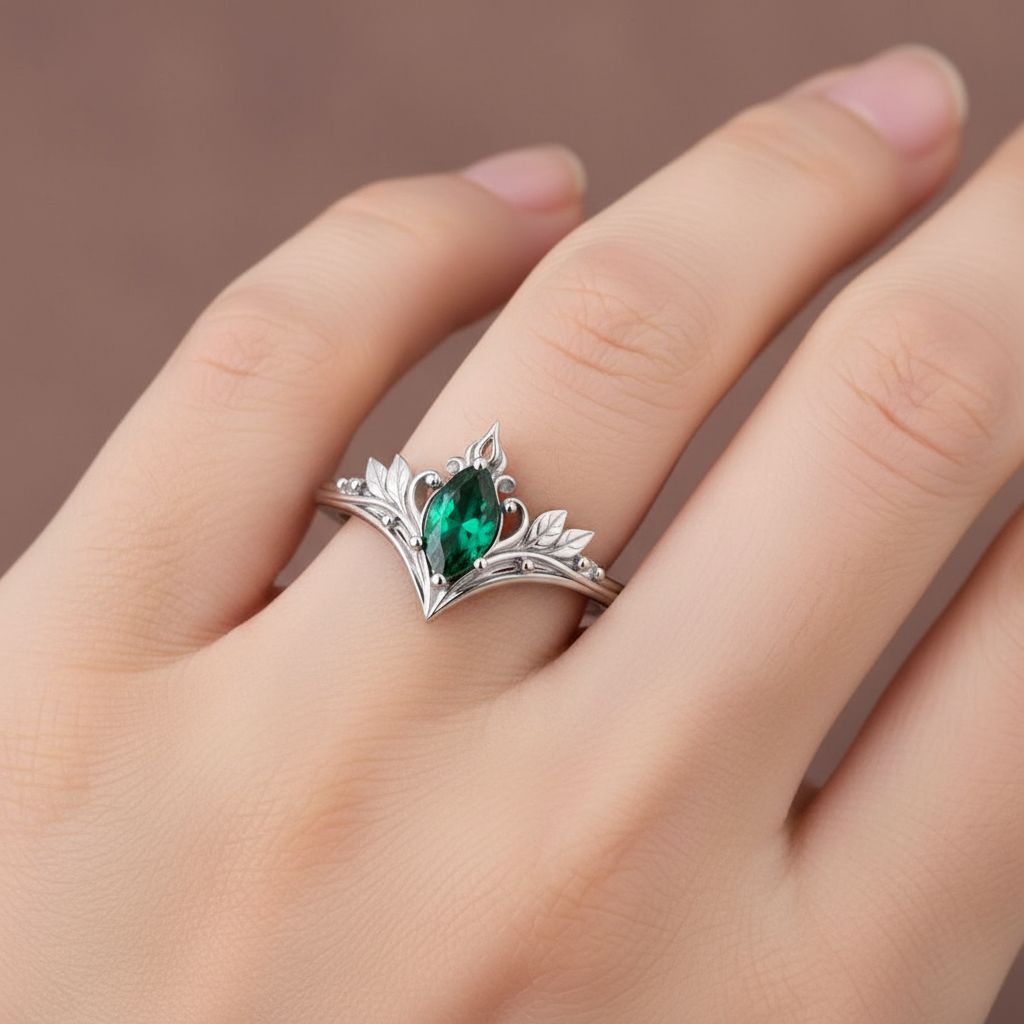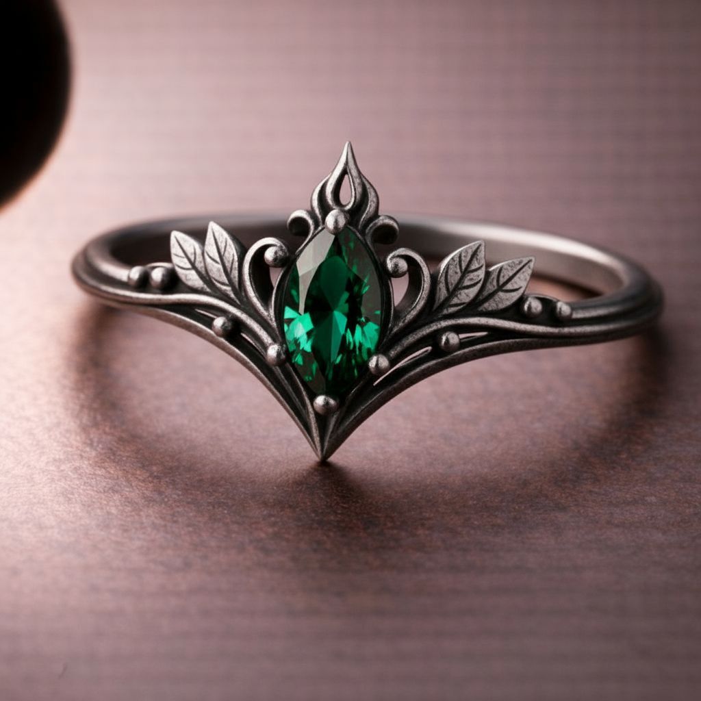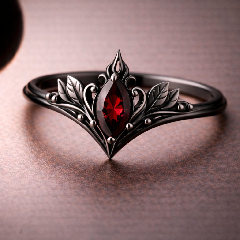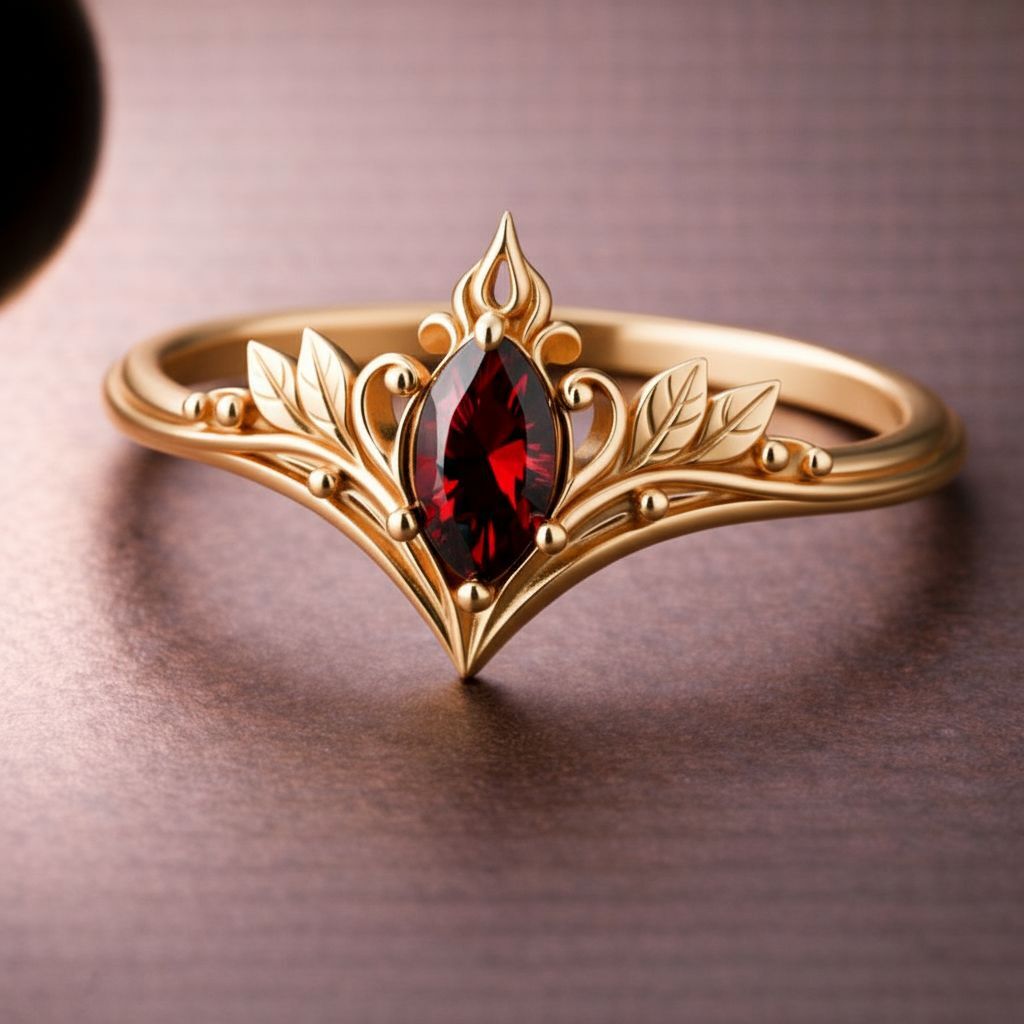 Drawing inspiration from ancient elven legends and vintage fantasy aesthetics, this Vintage Elven Marquise Ring reflects timeless romance and mystical elegance. The delicate leaf motifs symbolize devotion, continuity, and the quiet beauty of nature, while the marquise-shaped red stone represents love, passion, and emotional depth. Designed with an antique fantasy spirit, this ring evokes the feeling of a treasured heirloom passed through enchanted generations. The flowing botanical lines and balanced symmetry create a romantic fantasy ring that feels both nostalgic and powerful. This vintage elven ring is crafted for those who appreciate symbolic jewelry, fairy tale romance, and nature inspired fantasy design. It is a piece that carries meaning, intention, and a sense of story, making it ideal for anyone drawn to romantic symbolism and old world charm.